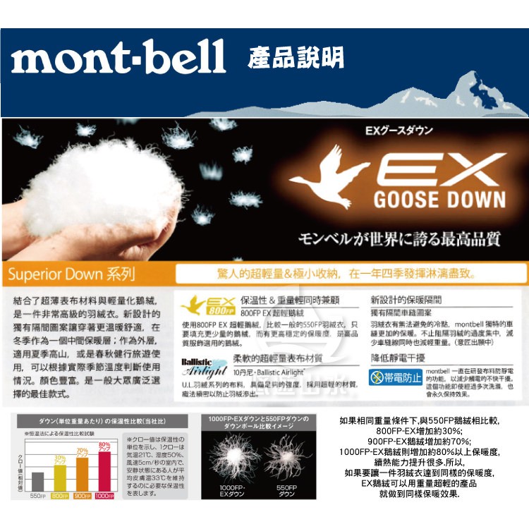 Mont-Bell 日本 女 PERMAFROST LT DOWN 800FP 連帽外套《雀藍》/110150/悠遊山水