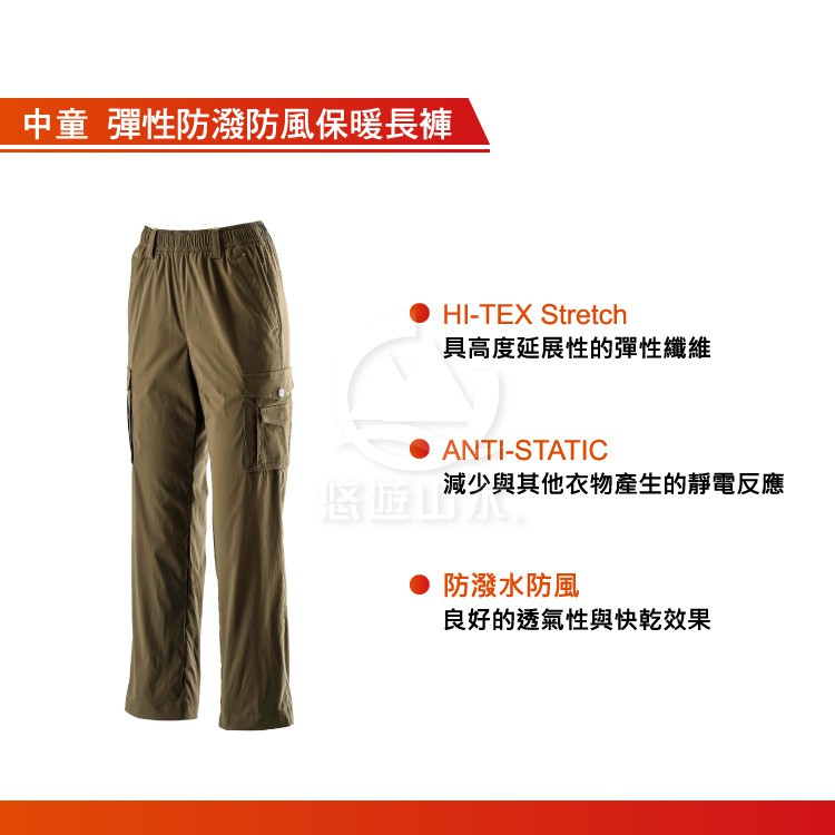 【Wildland 荒野 中童彈性防潑防風保暖長褲《深橄欖》】0A22360/休閒長褲/防風長褲/戶外/悠遊山水