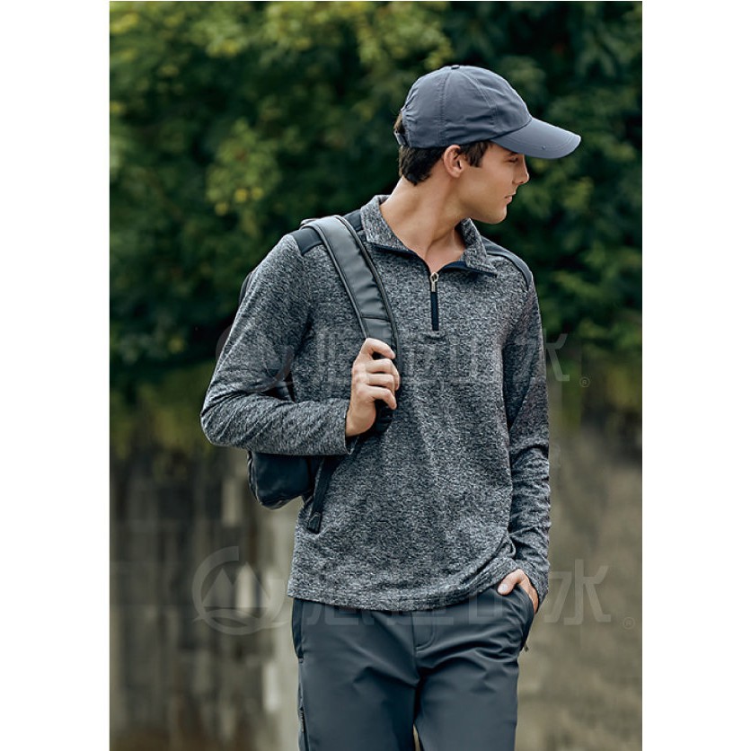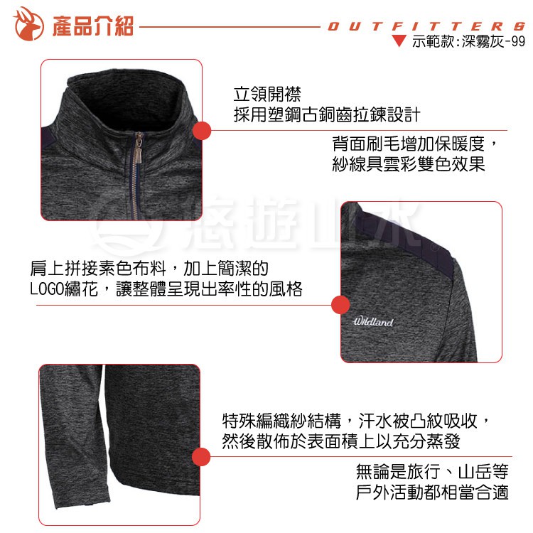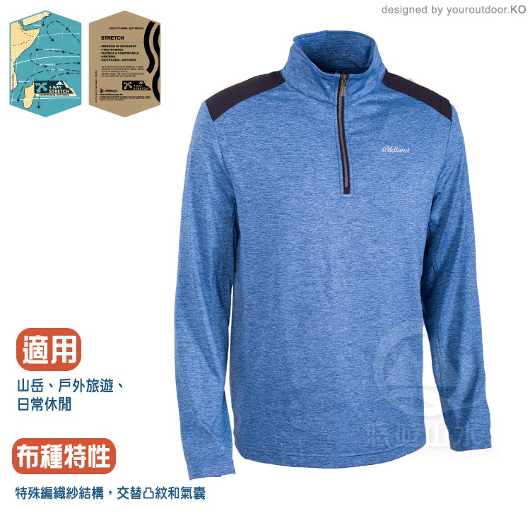 【Wildland 荒野 男 彈性針織雙色保暖上衣《灰藍》】OA62602/立領上衣/針織衣/開襟/彈性/悠遊山水