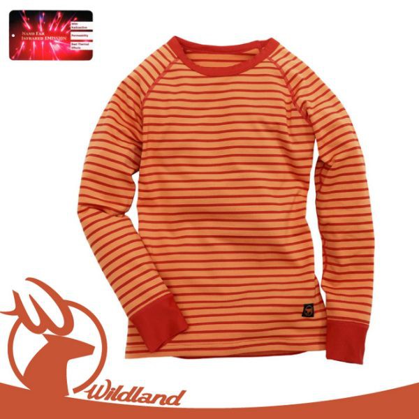【Wildland 荒野 童 遠紅外線彈性條紋衣《橘紅》】0A12683/休閒衫/條紋/彈性/保暖衣/悠遊山水