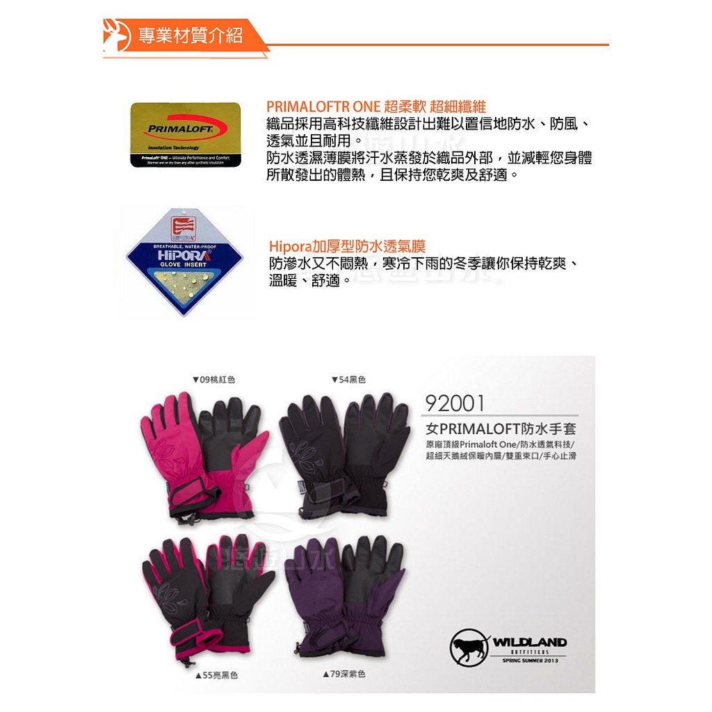 【Wildland 荒野 女 PRIMALOFT防水手套《亮黑》】92001/超細天鵝絨/手心止滑/機車手套/悠遊山水