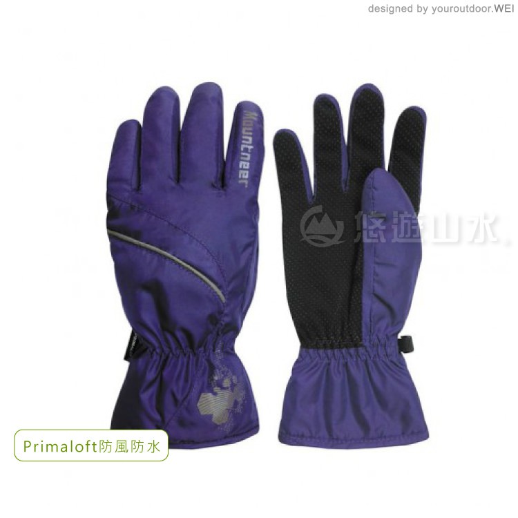 【Mountneer 山林 Primaloft防水反光手套 《紫/銀》】12G06/機車手套/防水/防風/悠遊山水