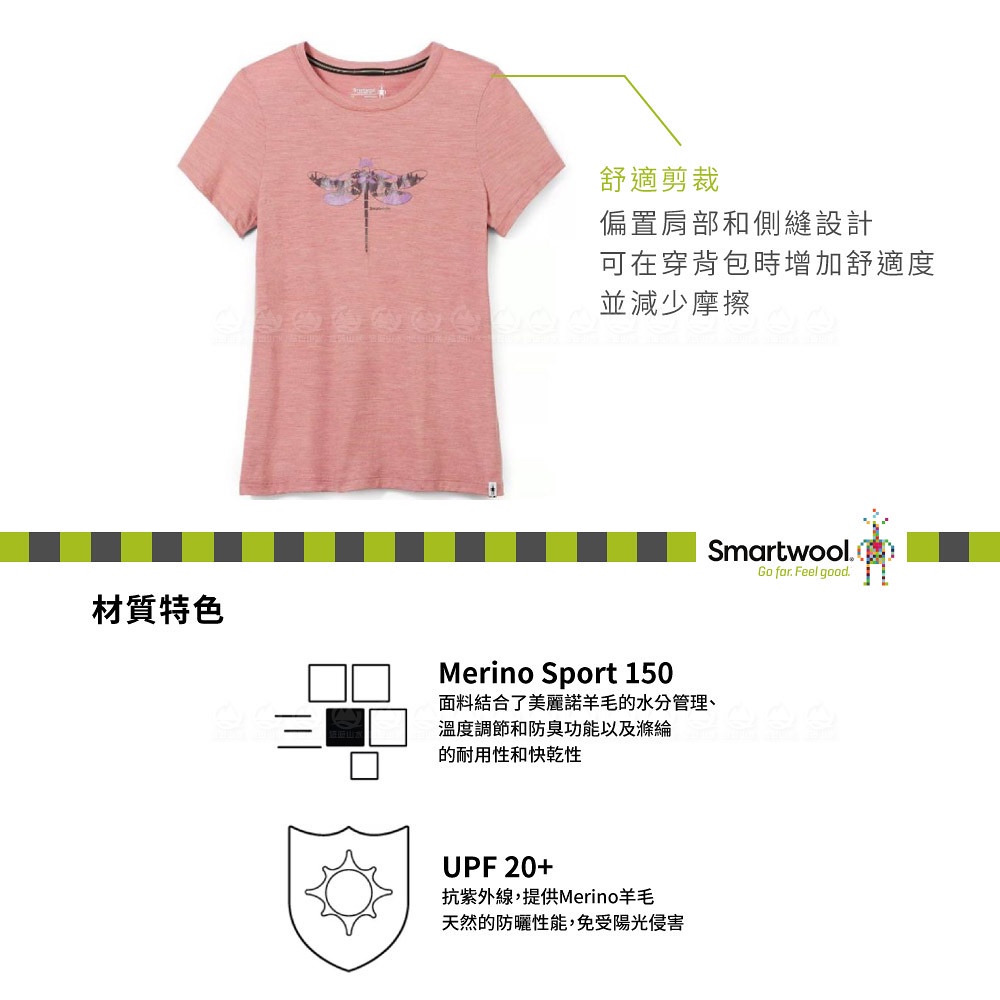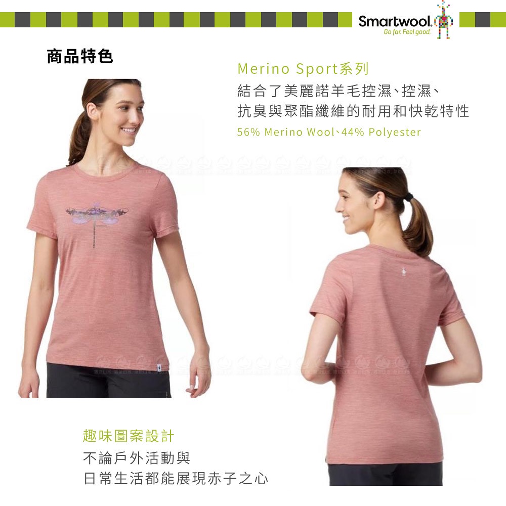 【SmartWool 美國 女 Merino Sport 150塗鴉短袖T恤《蜻蜓漫舞/霧赤褐》】SW016598/短T