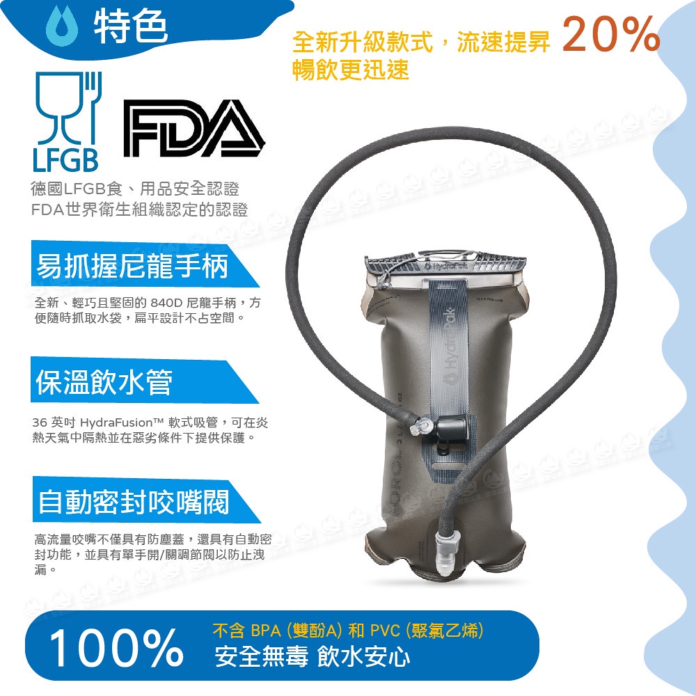 【HydraPak 美國 軍規提把2L吸管水袋】AS522/Force 2L/運動水袋/三鐵/馬拉松