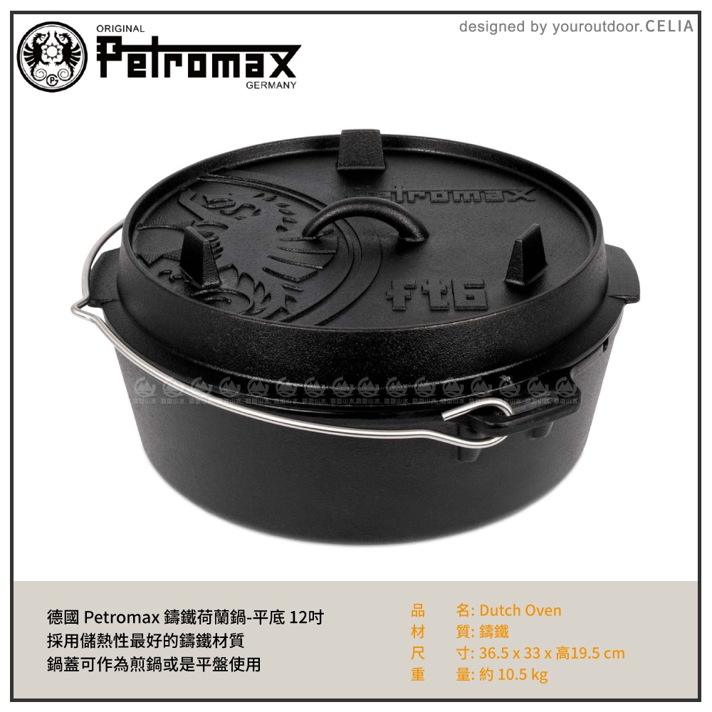 【Petromax 德國 平底鑄鐵荷蘭鍋 12吋 36.5CM】FT6-T/露營野炊/煎鍋/平底鍋/鑄鐵鍋/燒烤盤