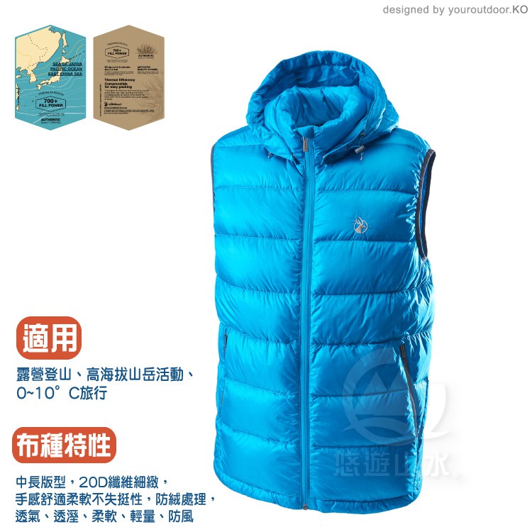 【Wildland 荒野 男 700FP可拆帽輕羽絨背心《地中海藍》】OA62172/內搭背心/保暖背心/連帽/悠遊山水