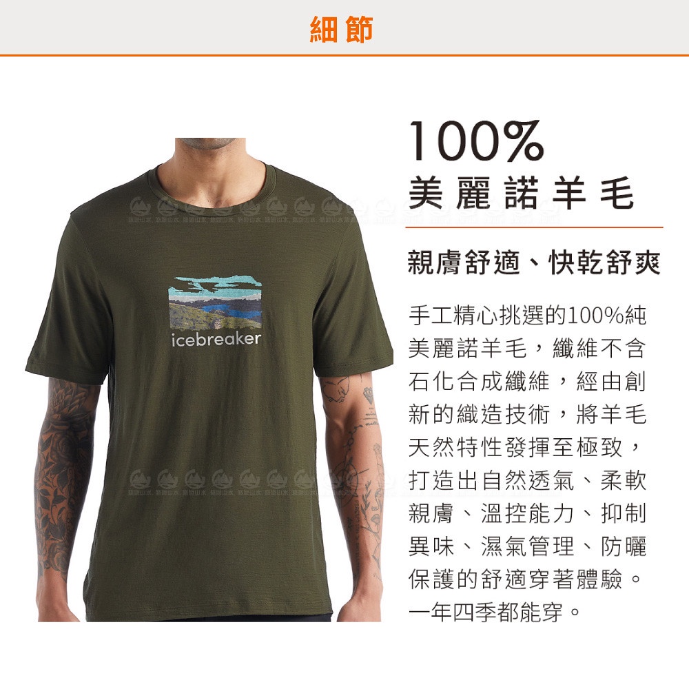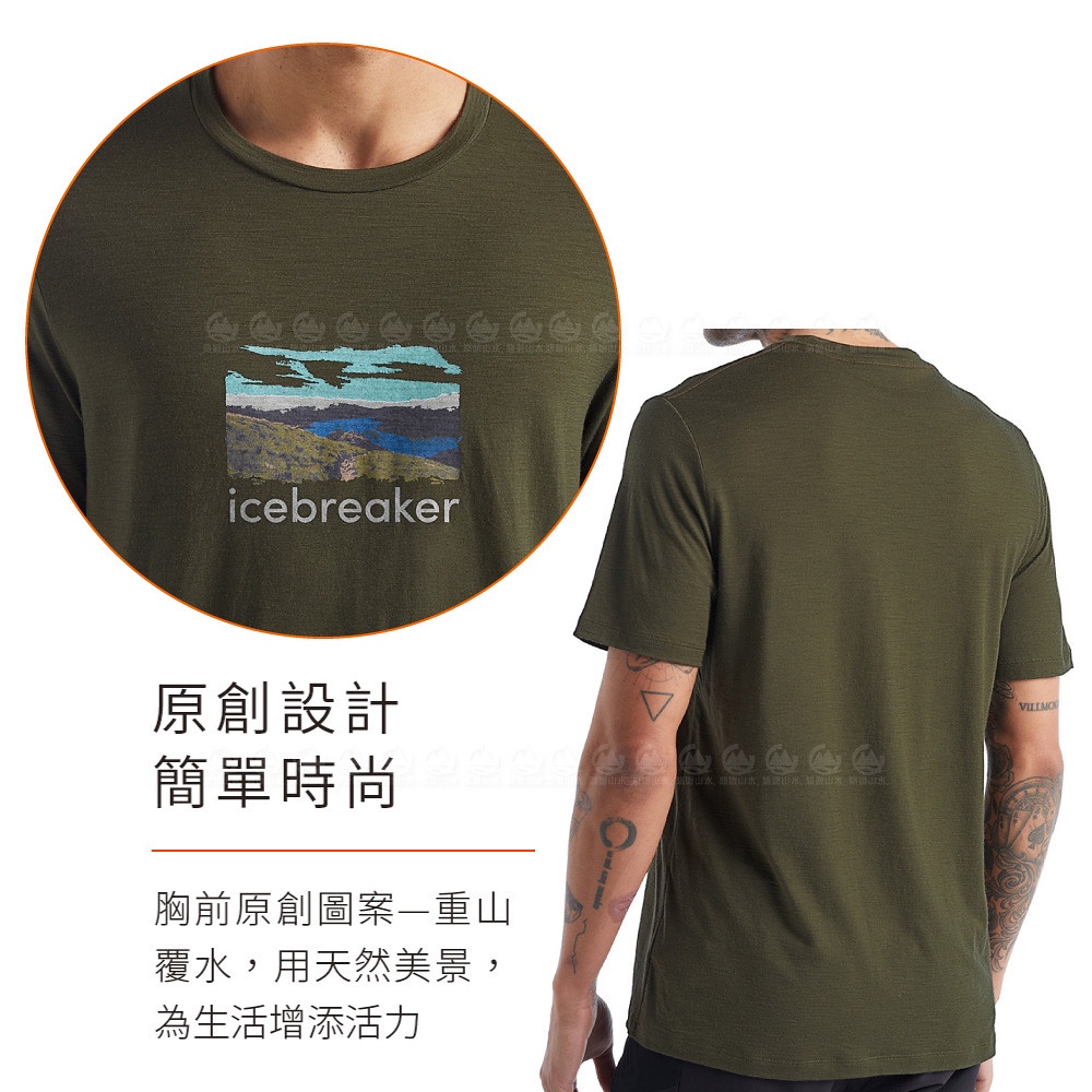 【Icebreaker 男 Tech Lite II圓領短袖上衣(重山覆水)AD150《橄欖綠》】IB0A56CN/短T