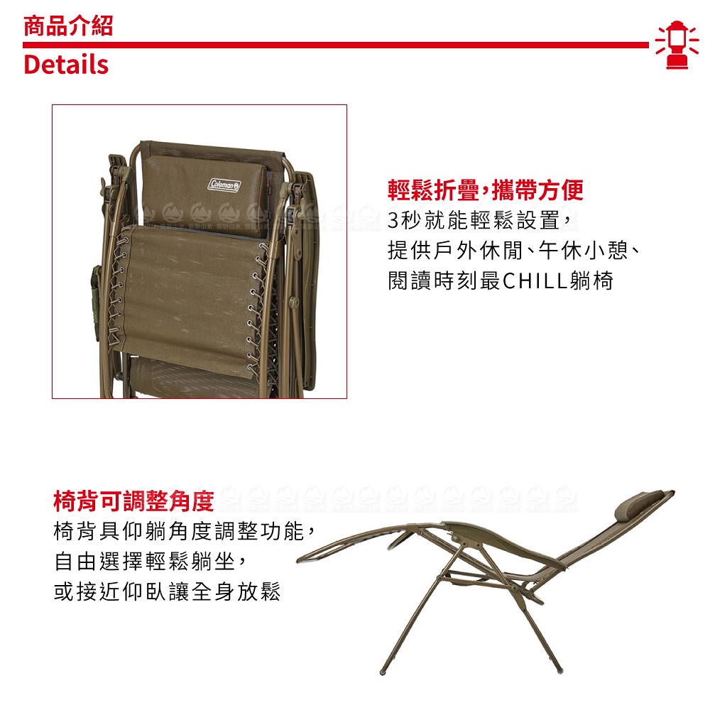 【Coleman 美國 INFINITY躺椅《綠橄欖》】CM-38848/折疊椅/露營椅/休閒椅/戶外椅