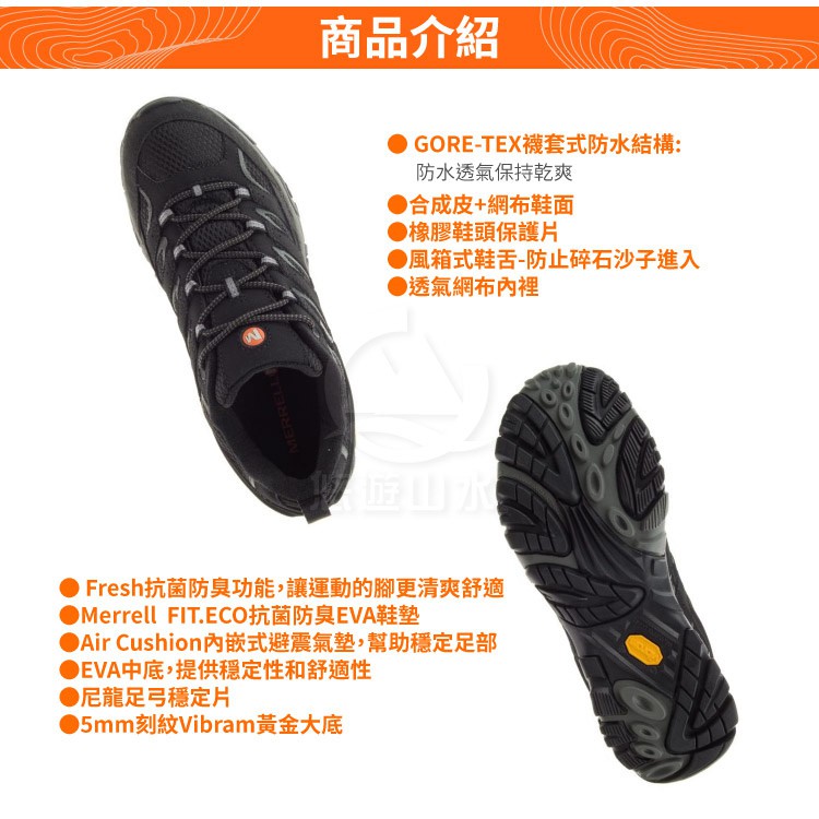【MERRELL 美國 男 MOAB 2 GORE-TEX登山健行鞋《黑色》】ML06037/登山鞋/防水/悠遊山水