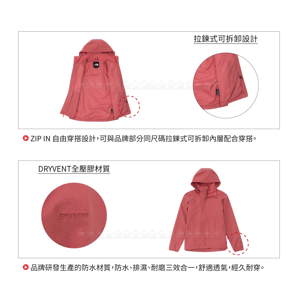【The North Face 女 DV防水外套 AP《深玫瑰粉》】5AZZ/防風外套/連帽外套/衝鋒衣/風雨衣