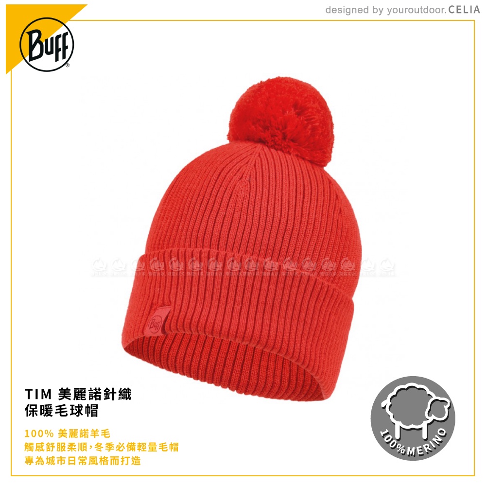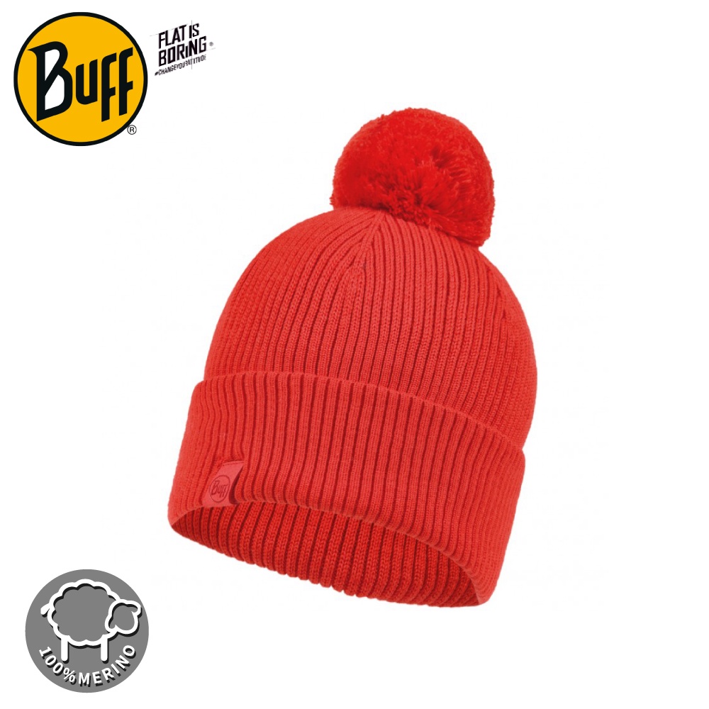 【BUFF 西班牙 TIM 美麗諾針織保暖毛球帽《烈焰紅》】126463/羊毛帽/針織帽/毛線帽/休閒帽