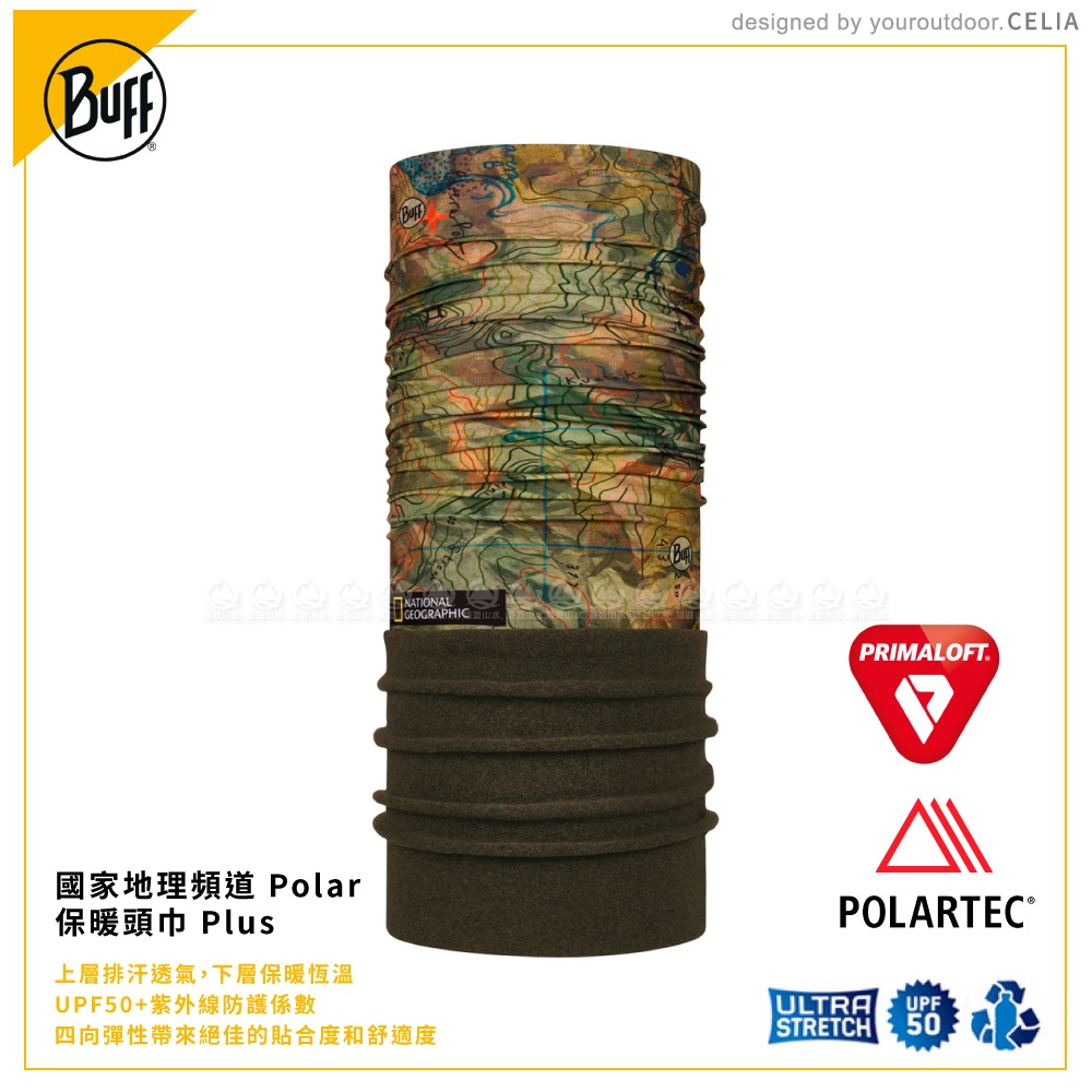 【BUFF 西班牙 國家地理頻道 POLAR 保暖頭巾 PLUS《山形橄綠》】126759/圍脖/帽子/口罩/圍巾/眼罩