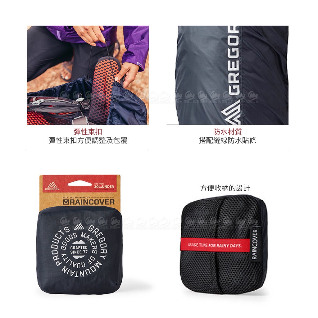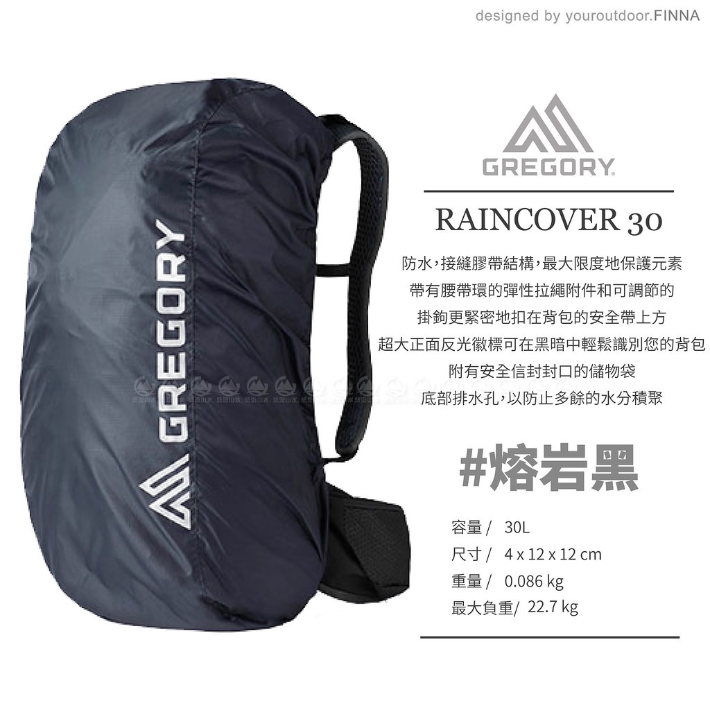 【GREGORY 美國 30L防水雨罩《熔岩黑》】141349/防雨罩/披風/背包套/背包套束口