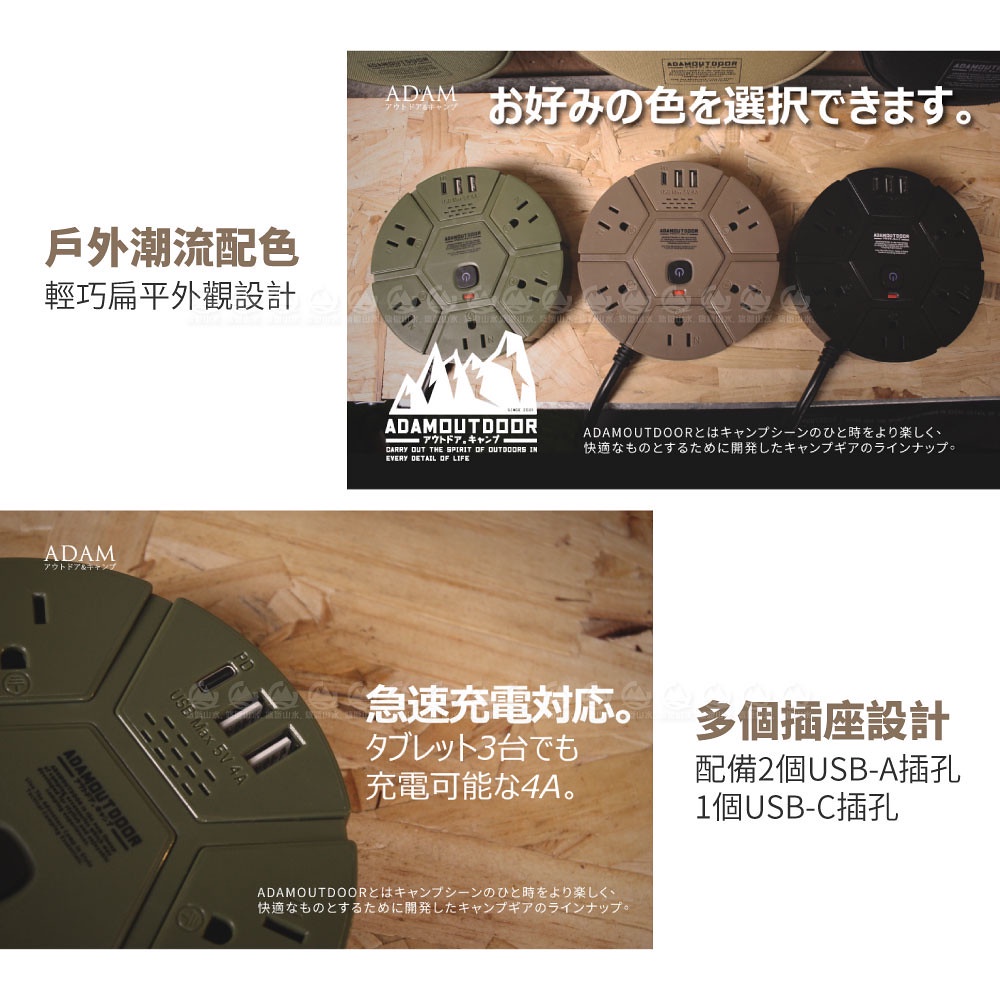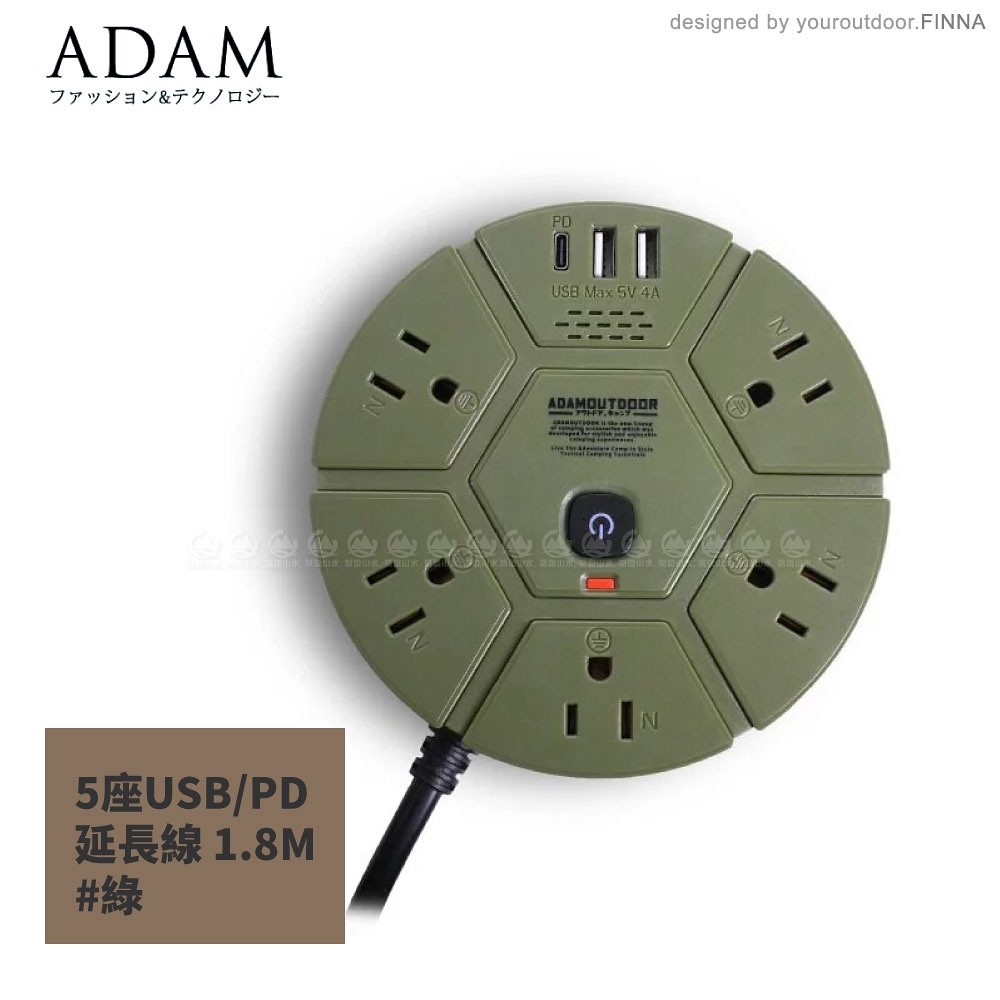 【ADAM 延長線組3p5座3UPD1.8M《綠》】ADPW-PS351PDG/延長線插座/延長線