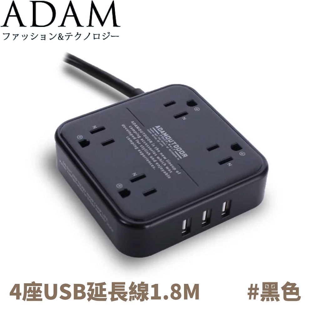 【ADAM 長線組3p4座3U1.8M《黑》】ADPW-PS3413UBK/延長線/插座/露營/野營