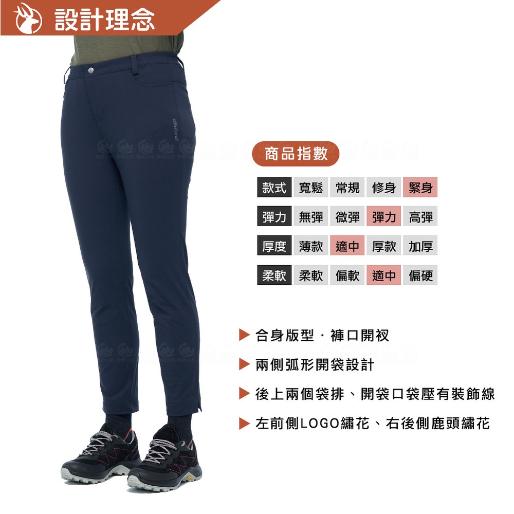 【Wildland 荒野 女 N66彈性防風防潑合身長褲《礦石藍》】0B02303/休閒運動/機能長褲/雙向彈性.防潑水