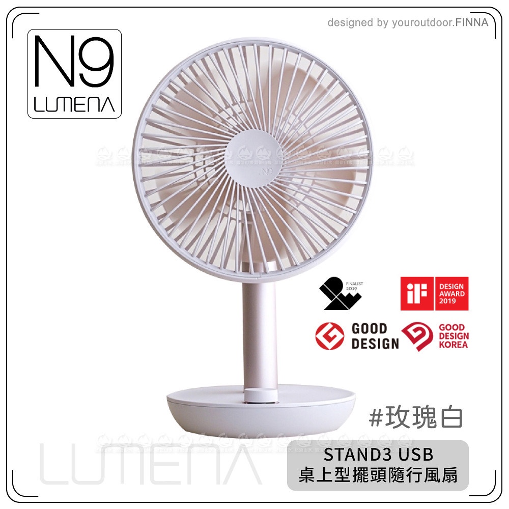 【N9 LUMENA N9-FAN STAND3 USB桌上型擺頭隨行風扇《玫瑰白》】STAND3/無線風扇/露營電扇