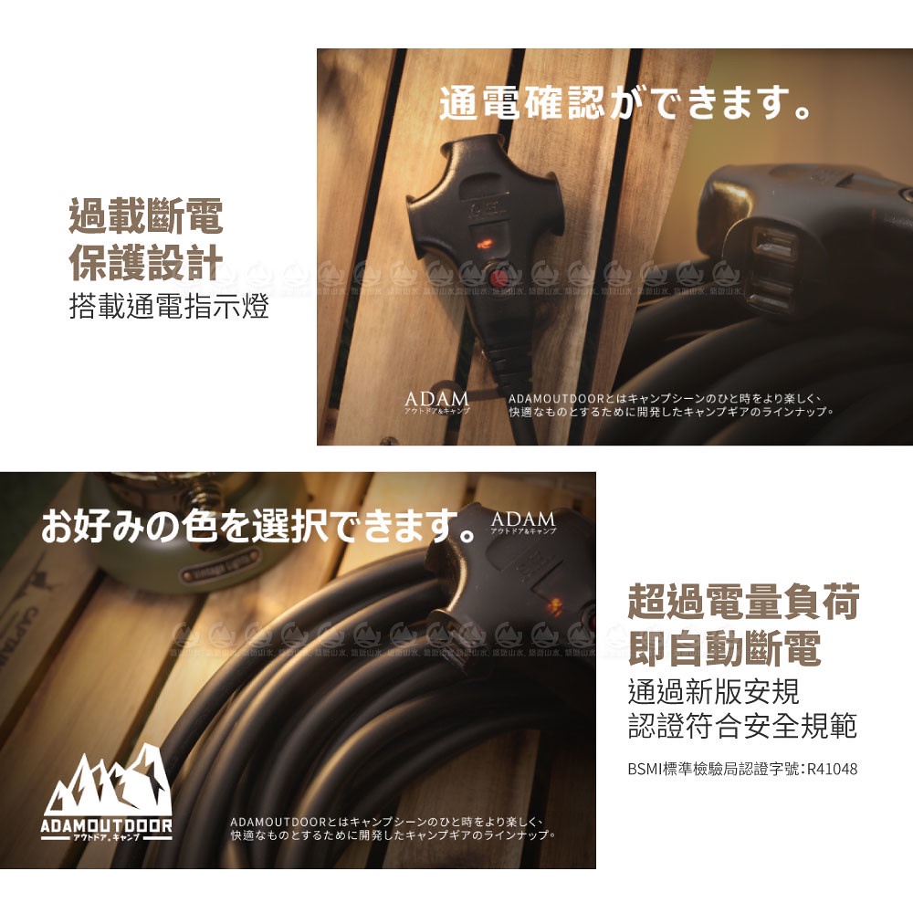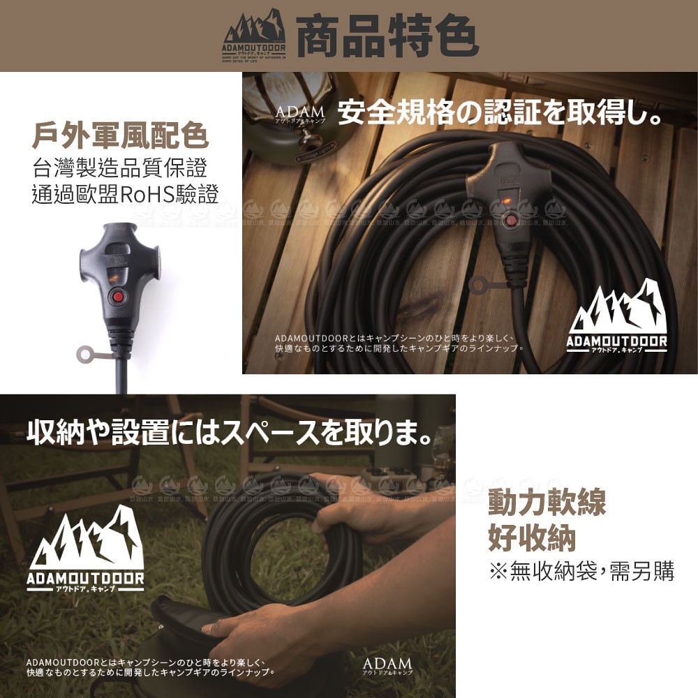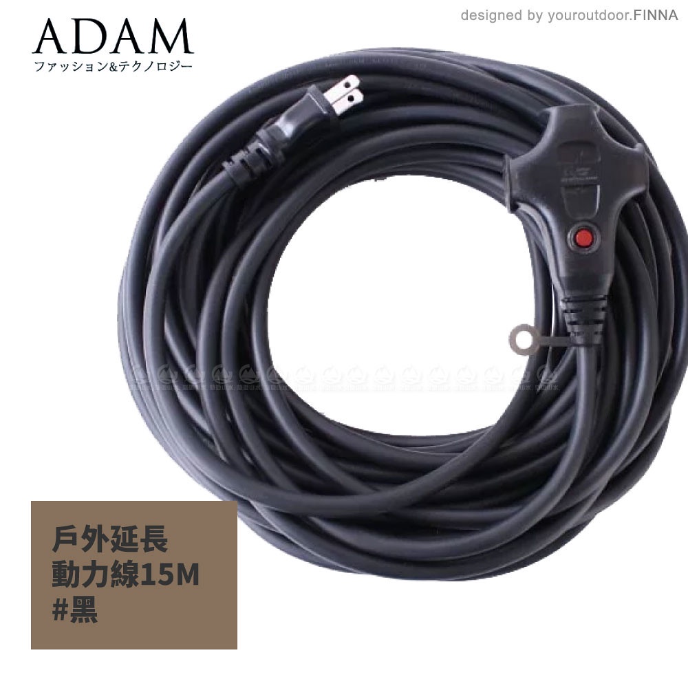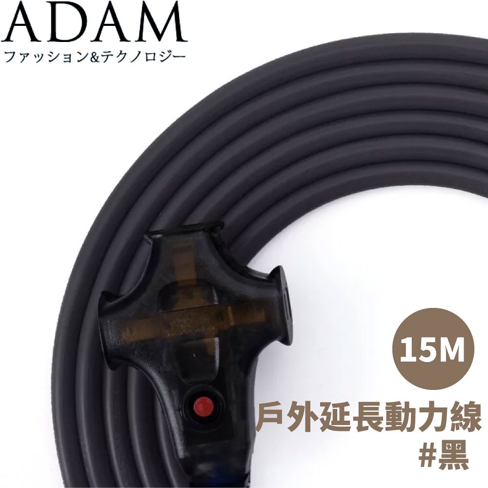【ADAM 台灣 戶外延長動力線(15M)《黑》】ADPW-EC15MBK/延長線/動力線/露營/登山