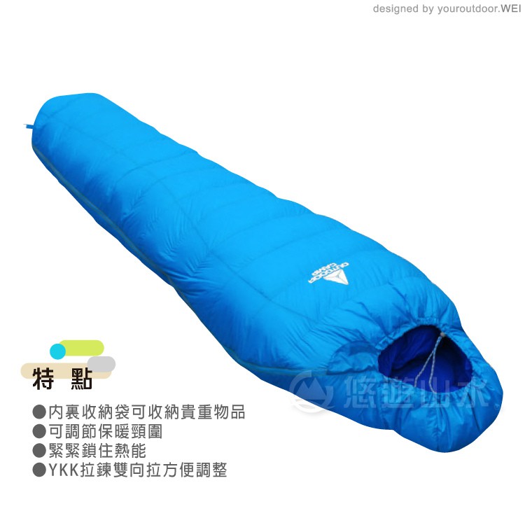【OUTDOOR CAMP 600g信封型羽絨睡袋《藍》】OC17026/露營睡袋/保暖/防寒/悠遊山水