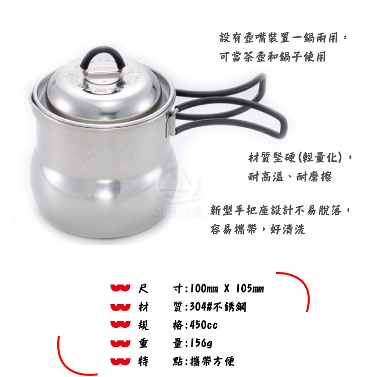 【Wen Liang 文樑 小茶壺鍋】ST-2014/304不鏽鋼/露營/野餐/咖啡壺/鍋具/悠遊山水
