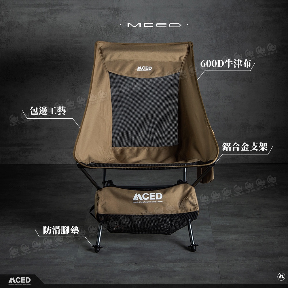 【MCED 中背透氣鋁合金輕量戰術椅-含杯架《沙棕》】3J7016/月亮椅/露營折疊椅/導演椅