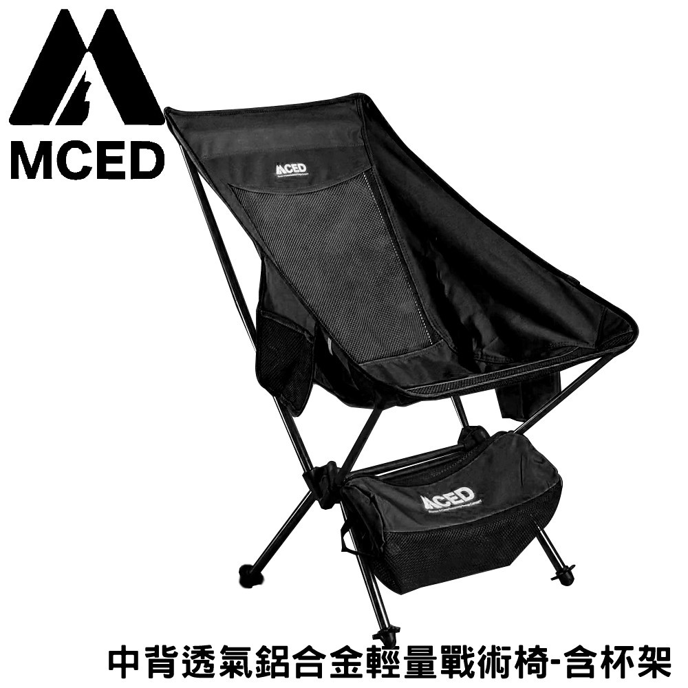 【MCED 中背透氣鋁合金輕量戰術椅-含杯架《黑》】3J7016/月亮椅/露營折疊椅/導演椅