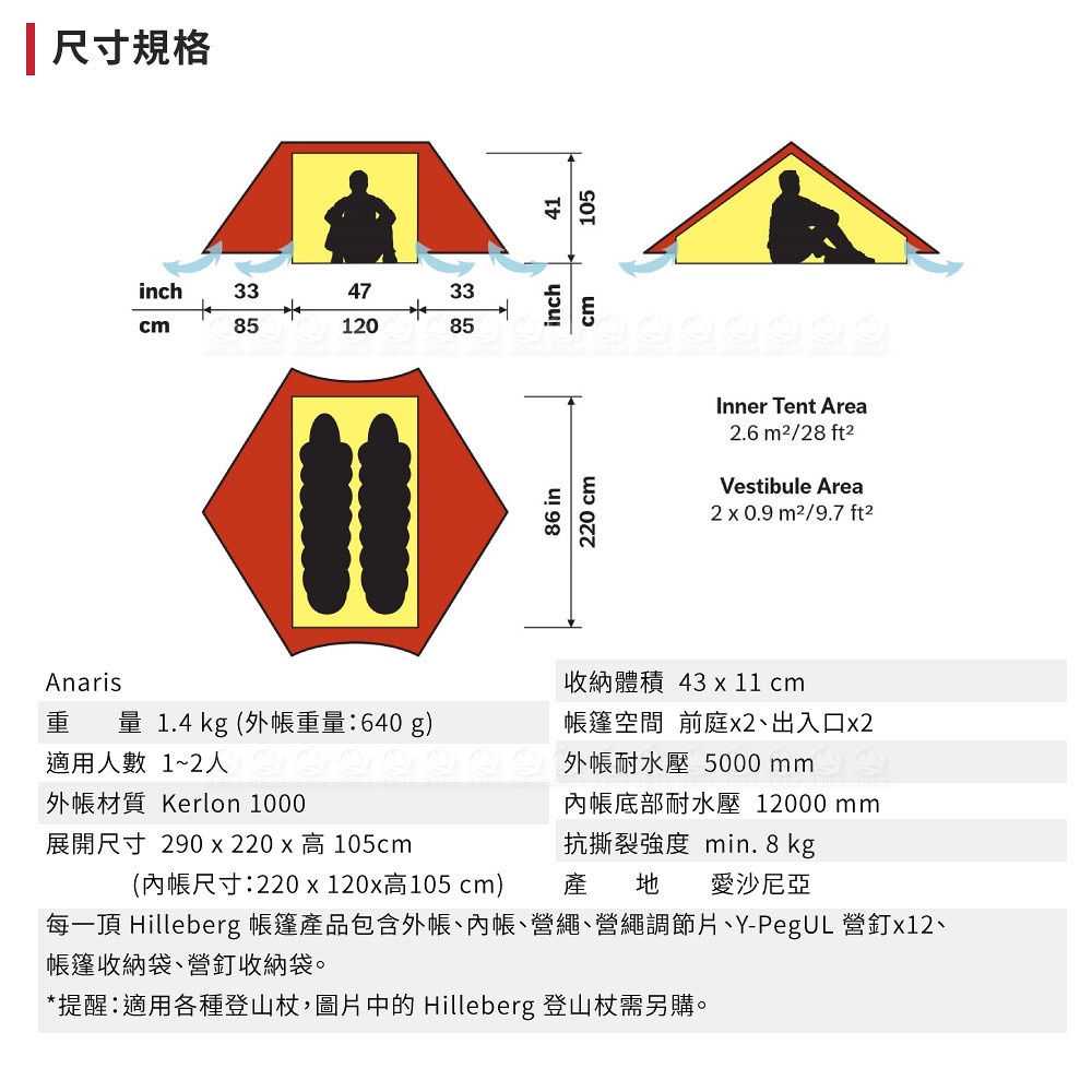 【HILLEBERG 瑞典 黃標 Anaris山小屋 輕量二人帳篷《紅1.4 kg》】018212/登山帳篷