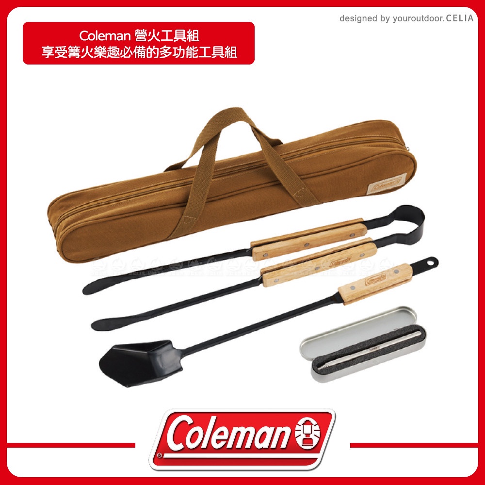 【Coleman 美國 營火工具組】CM-38864/焚火鉗/吹火棒/篝火夾鏟/炭火夾/木炭夾/焚火工具