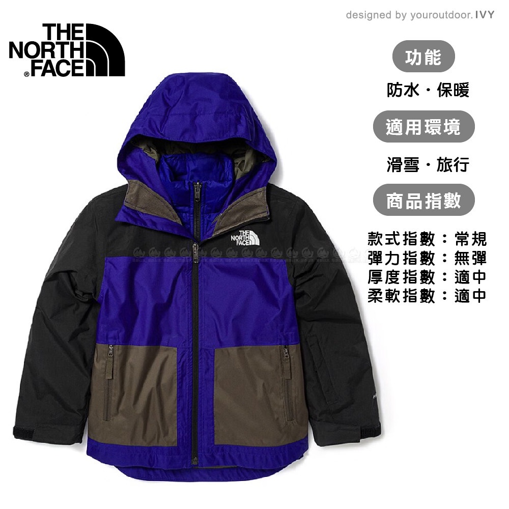 【The North Face 童 DV防水兩件式化纖雪衣外套 AP《黑藍》】7WR5/滑雪/防水/防風外套