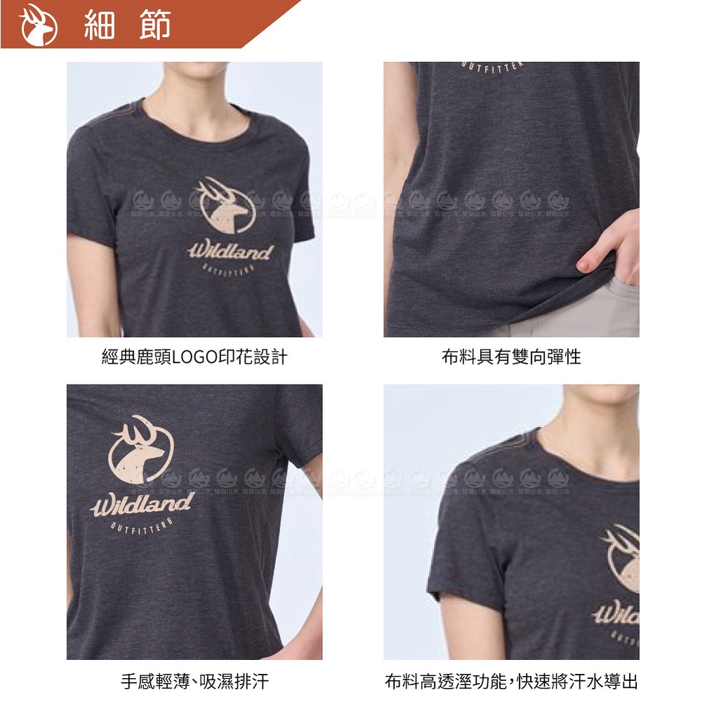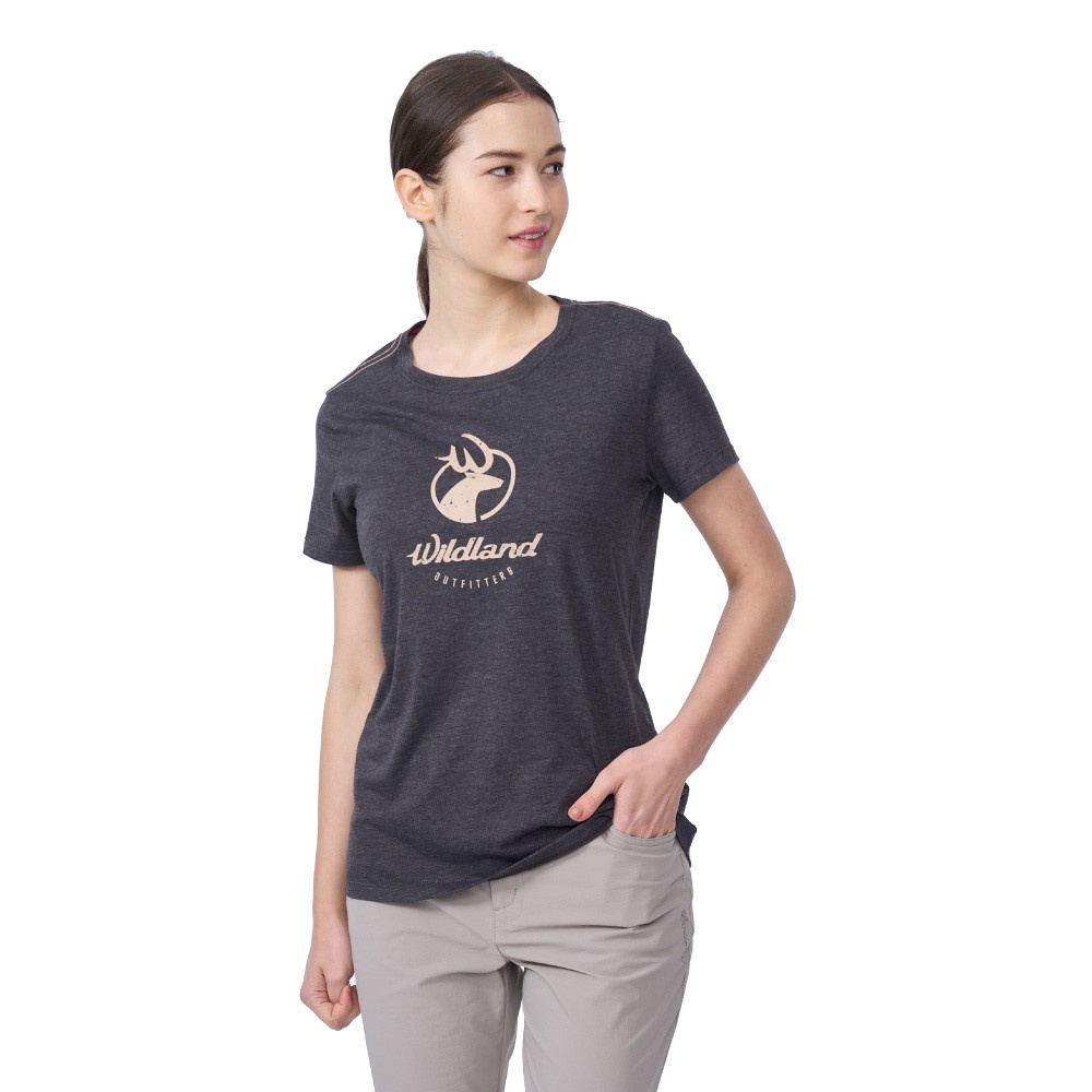 【Wildland 荒野 女 經典鹿頭機能銀纖維T恤《深灰》】0B0160/排汗衣/短T/圓領短袖