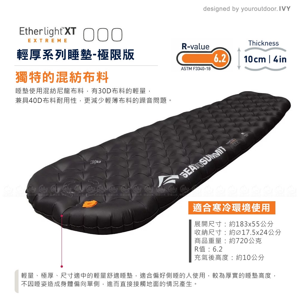 【Sea to Summit 澳洲 輕厚系列睡墊-極限版 R(充氣袋,維修貼,枕貼)《黑》】STSAMELXTEXM