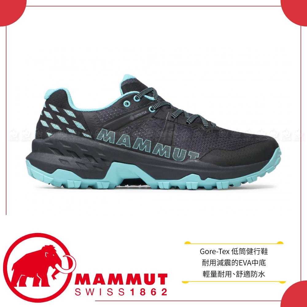 【MAMMUT 長毛象 女 Sertig II 低筒健行鞋《黑/冰冷霜》】3030-04290/機能鞋/GORE-TEX