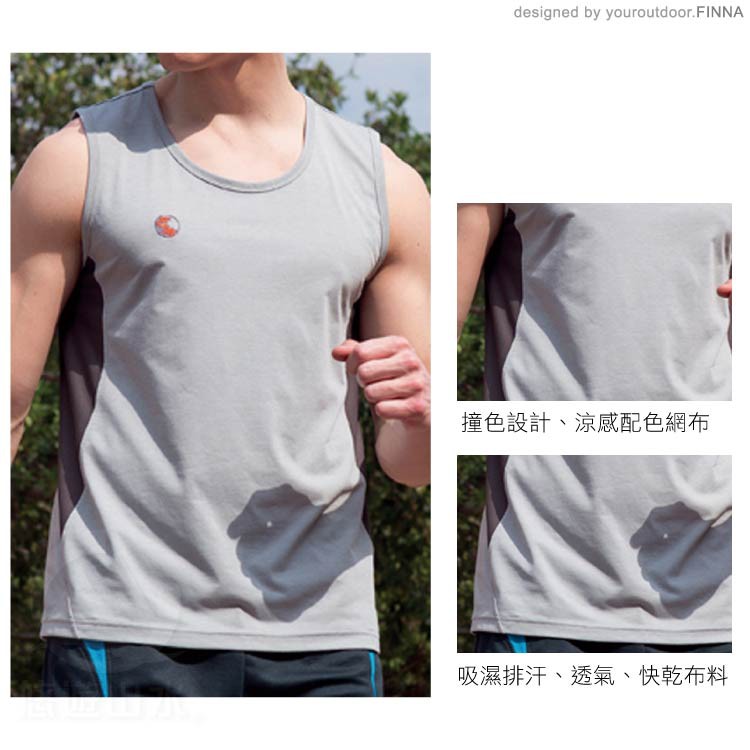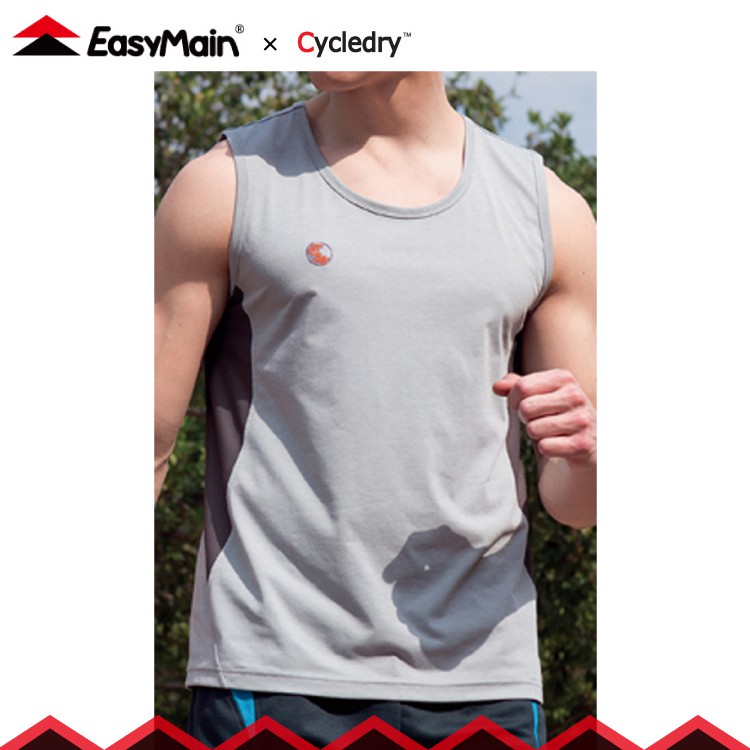 【EasyMain 衣力美 男 排汗快乾運動背心《灰》】VE17017/機能上衣/透氣休閒T恤/無袖排汗衣/悠遊山水