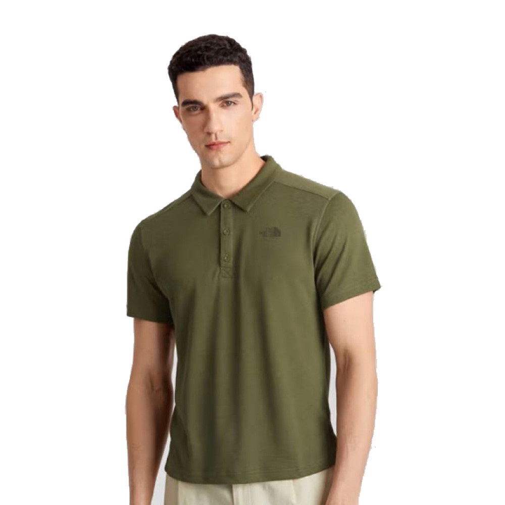 【The North Face 男 排汗透氣立領短袖上衣 AP《軍綠》】5B1P/短T/排汗衣/短袖上衣