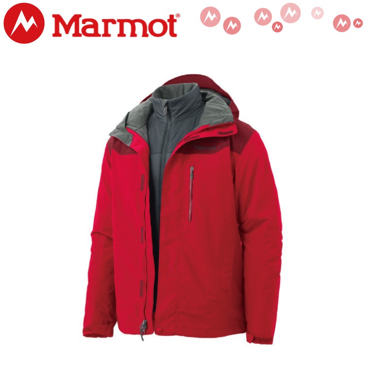 【MARMOT 男 Bastione兩件式防水透氣外套《紅》】40320/保暖外套/刷毛內裡/連帽夾克/透氣//悠遊山水