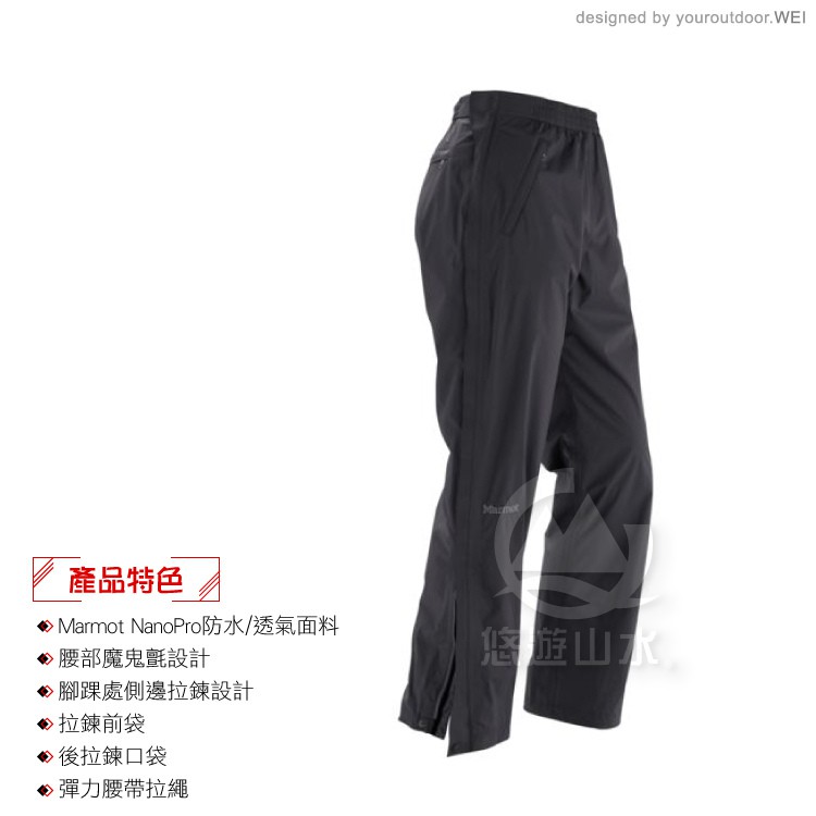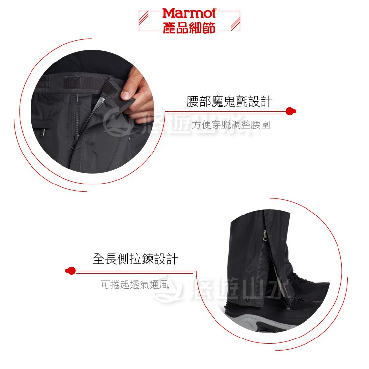 【MARMOT 男 Precip全開拉鍊防水透氣長褲《黑》】50260/運動長褲/登山長褲/輕薄防風防水/悠遊山水