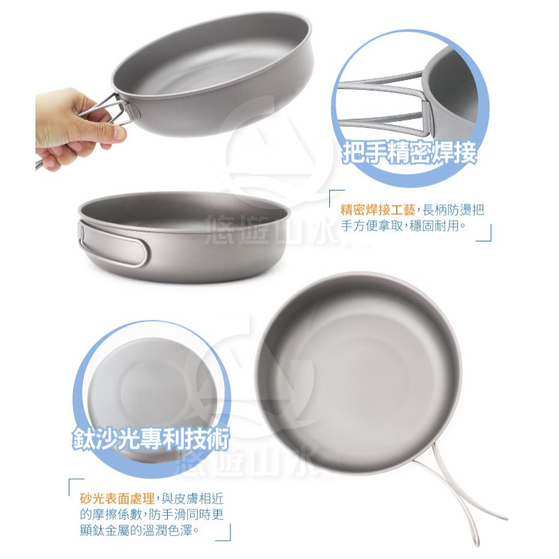 【North Field 美國 純鈦炊具煎盤 折疊把手 1500ml】8NDTF004/煎盤/露營/鈦鍋/鈦碗/悠遊山水