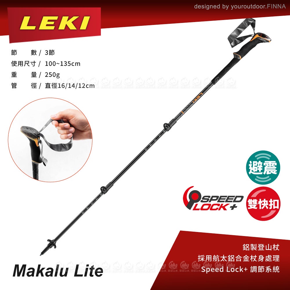 【LEKI 德國 Makalu Lite輕鋁避震快扣泡棉長握把登山杖《黑/橘》】65221082/手杖/登山/健行/柺杖
