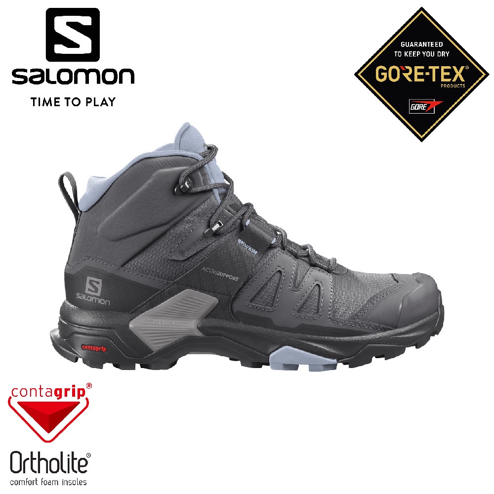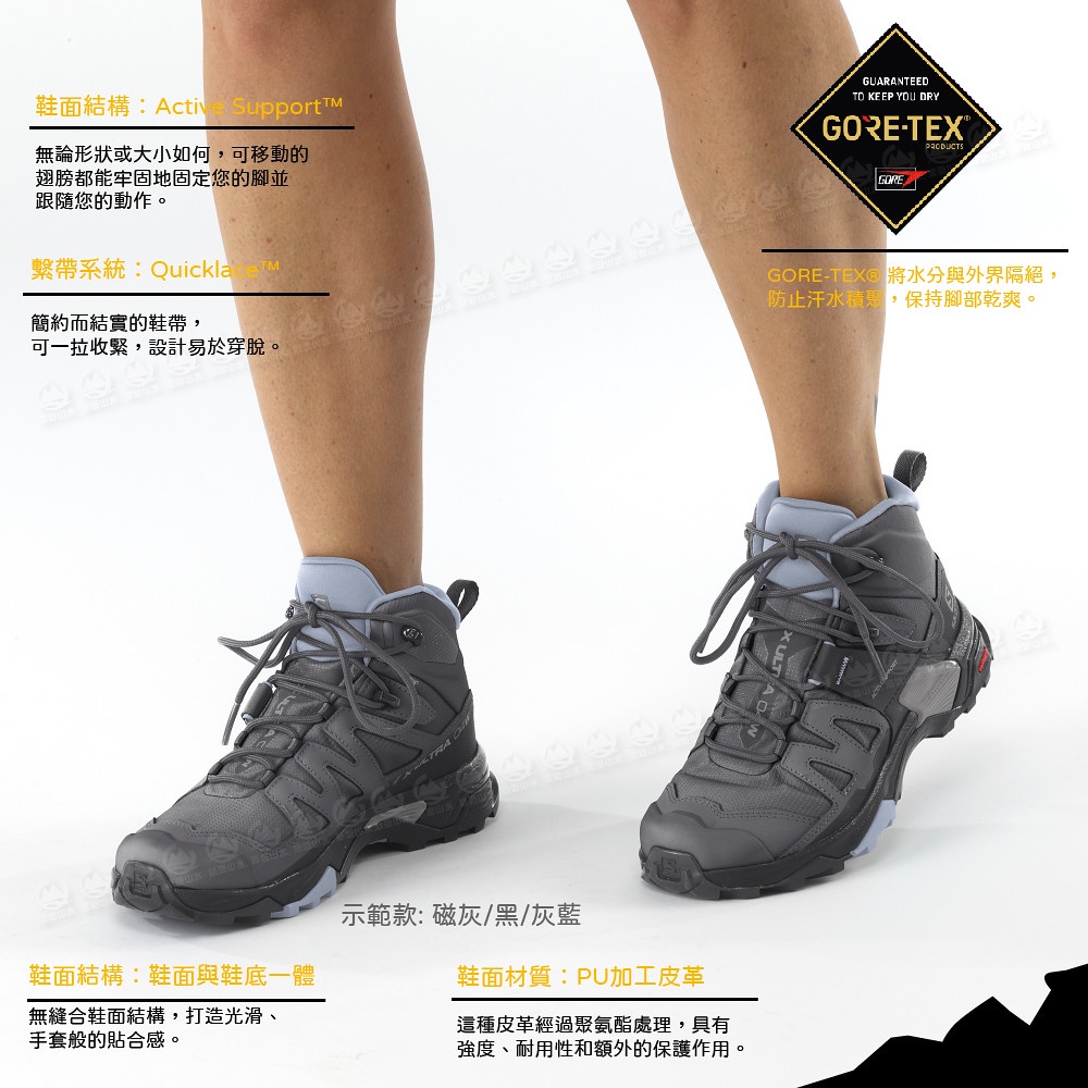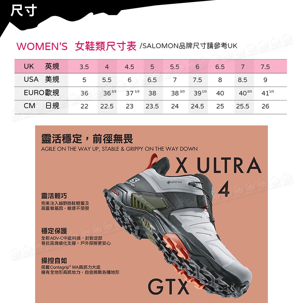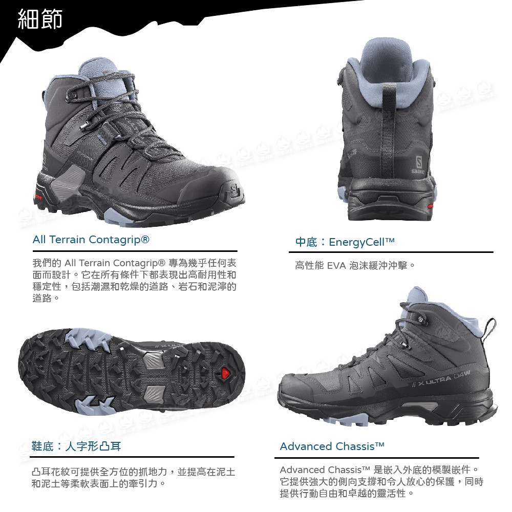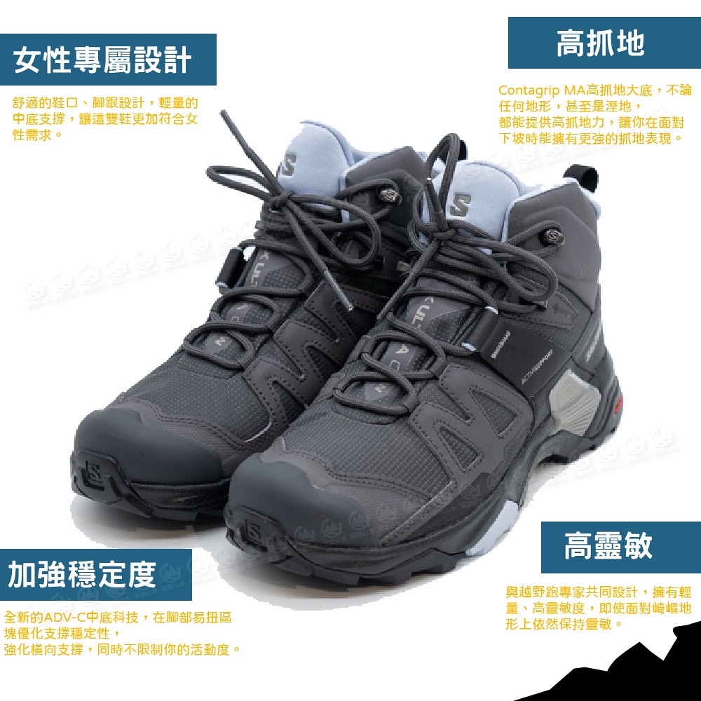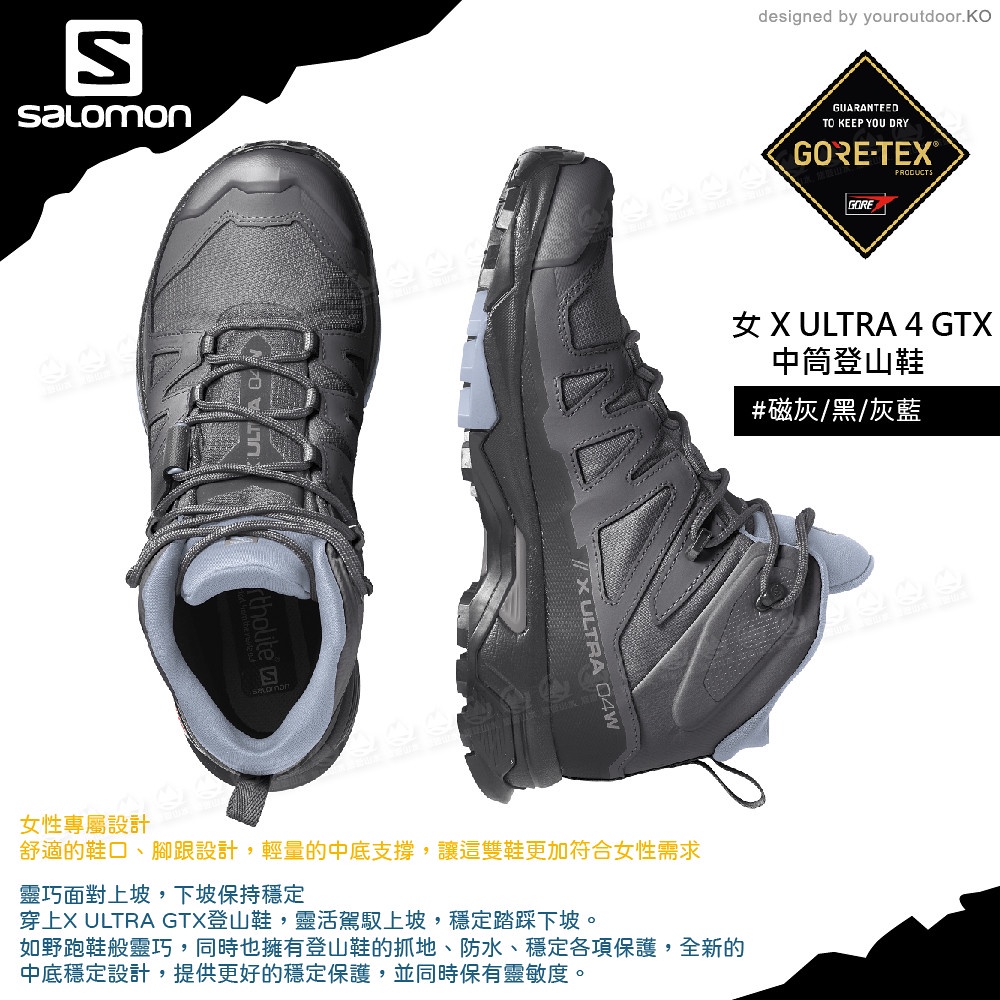 【SALOMON 索羅門 女 X ULTRA 4 GTX 中筒登山鞋《磁灰/黑/灰藍》】416250/健行鞋