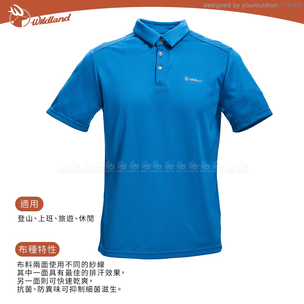 【Wildland 荒野 男 彈性 POLARTEC功能上衣《土耳其藍》】P1602/POLO衫/排汗衣/休閒短袖