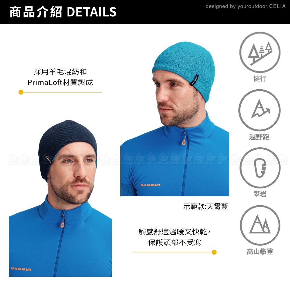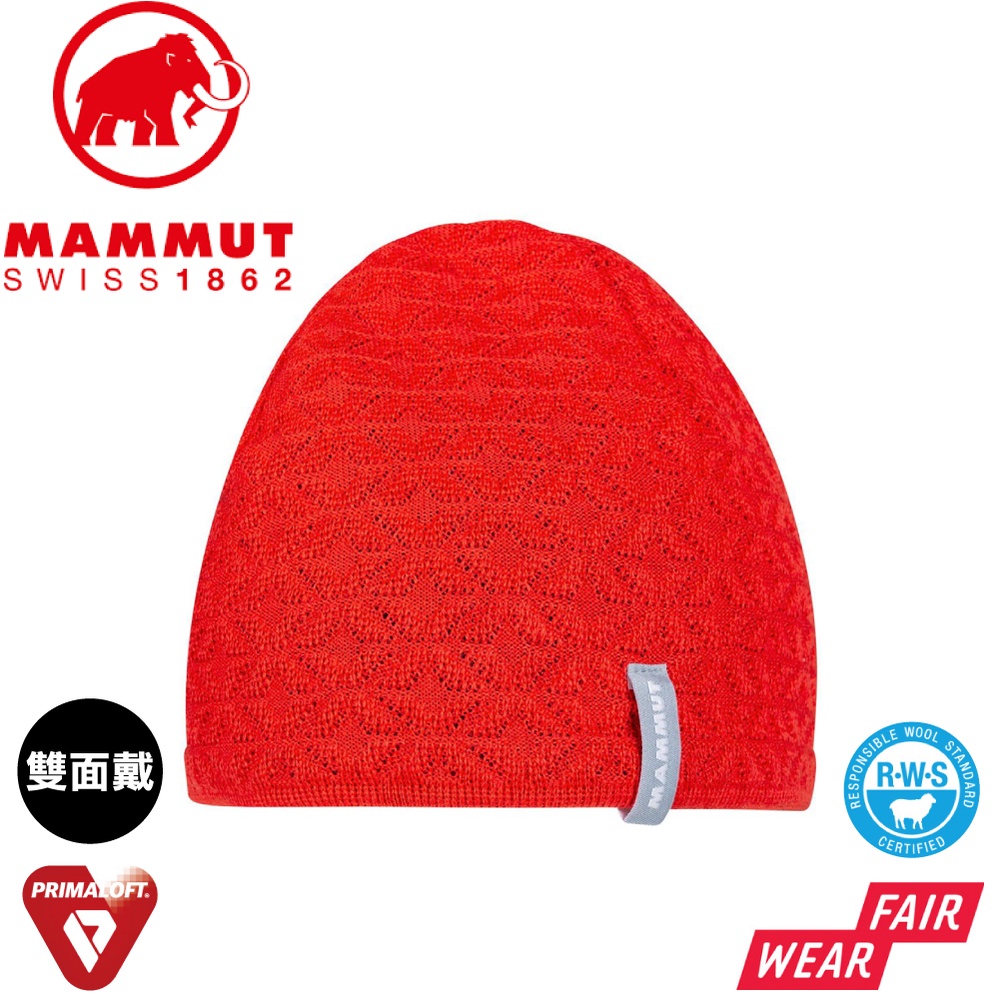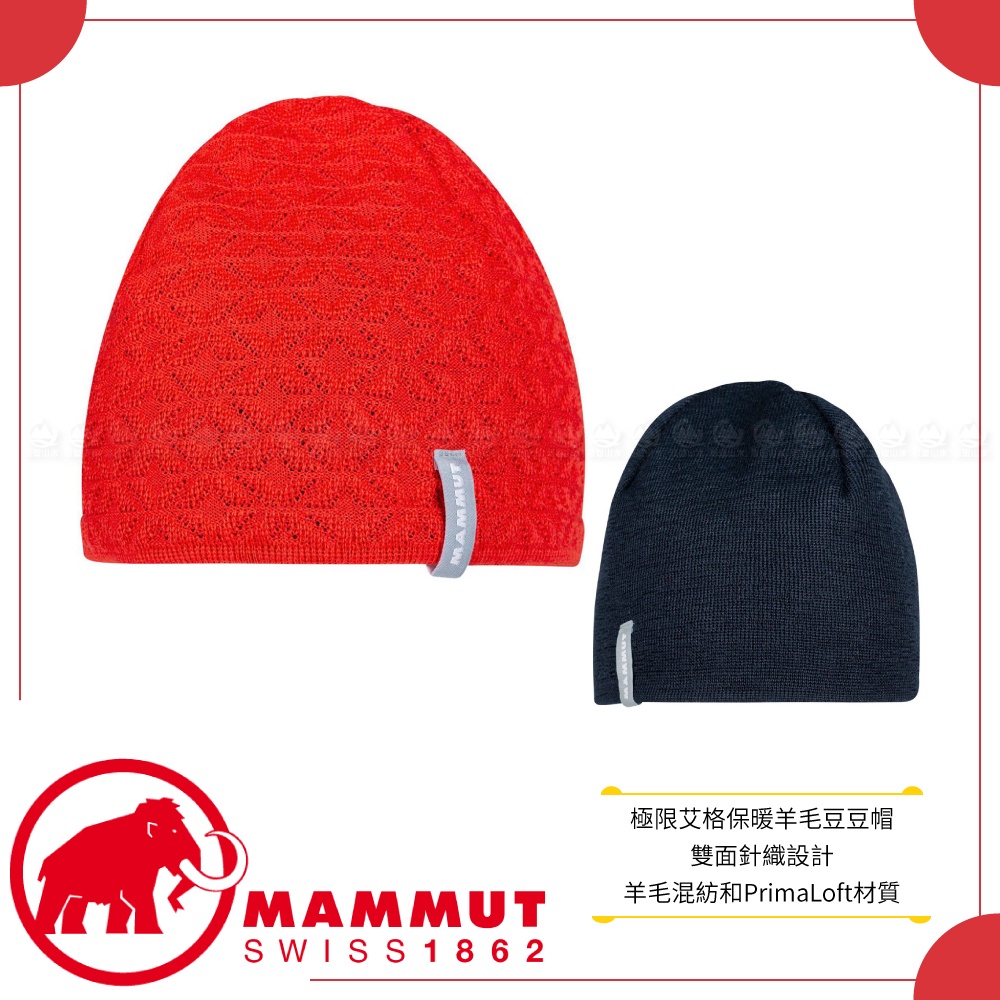 【MAMMUT 長毛象 Nordwand Beanie 極限艾格雙面羊毛豆豆帽《杜鵑紅》】1191-05822/針織帽
