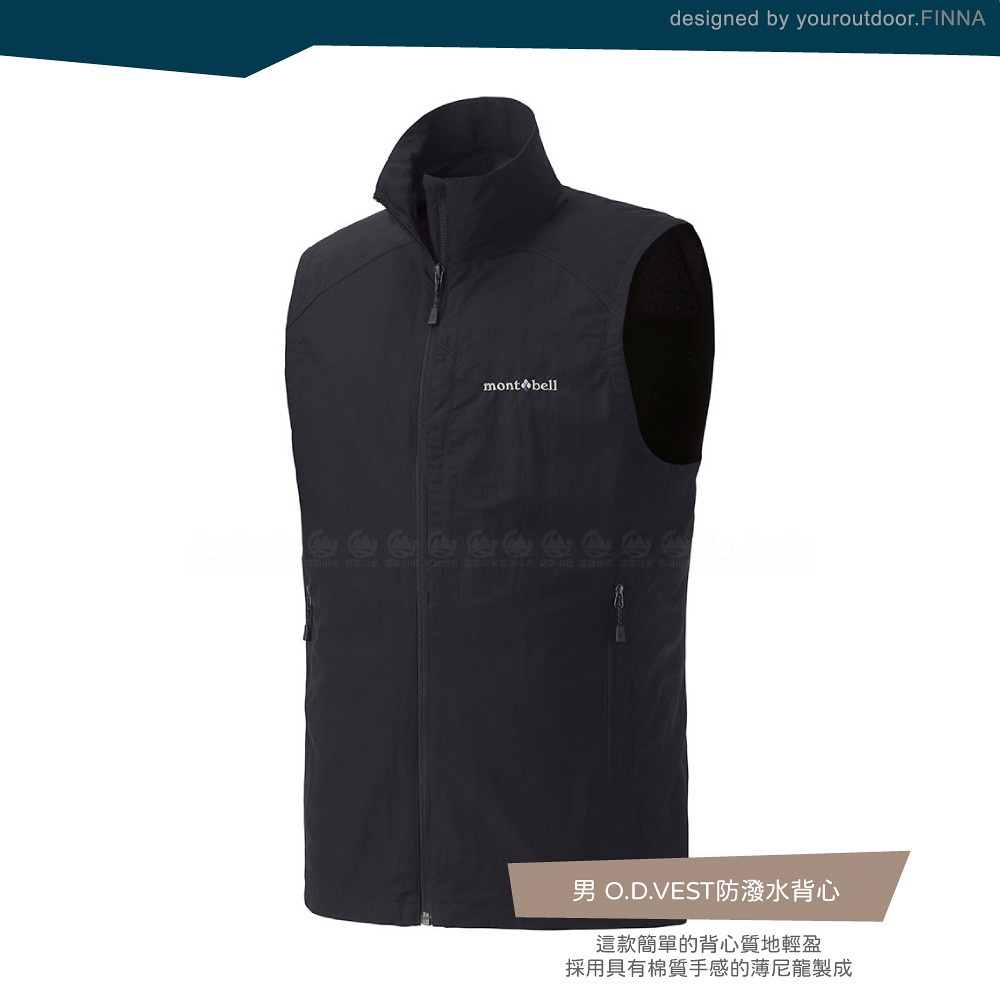 【Mont-Bell 日本 男 O.D.VEST防潑水背心《黑》】1103254/春夏背心/薄背心