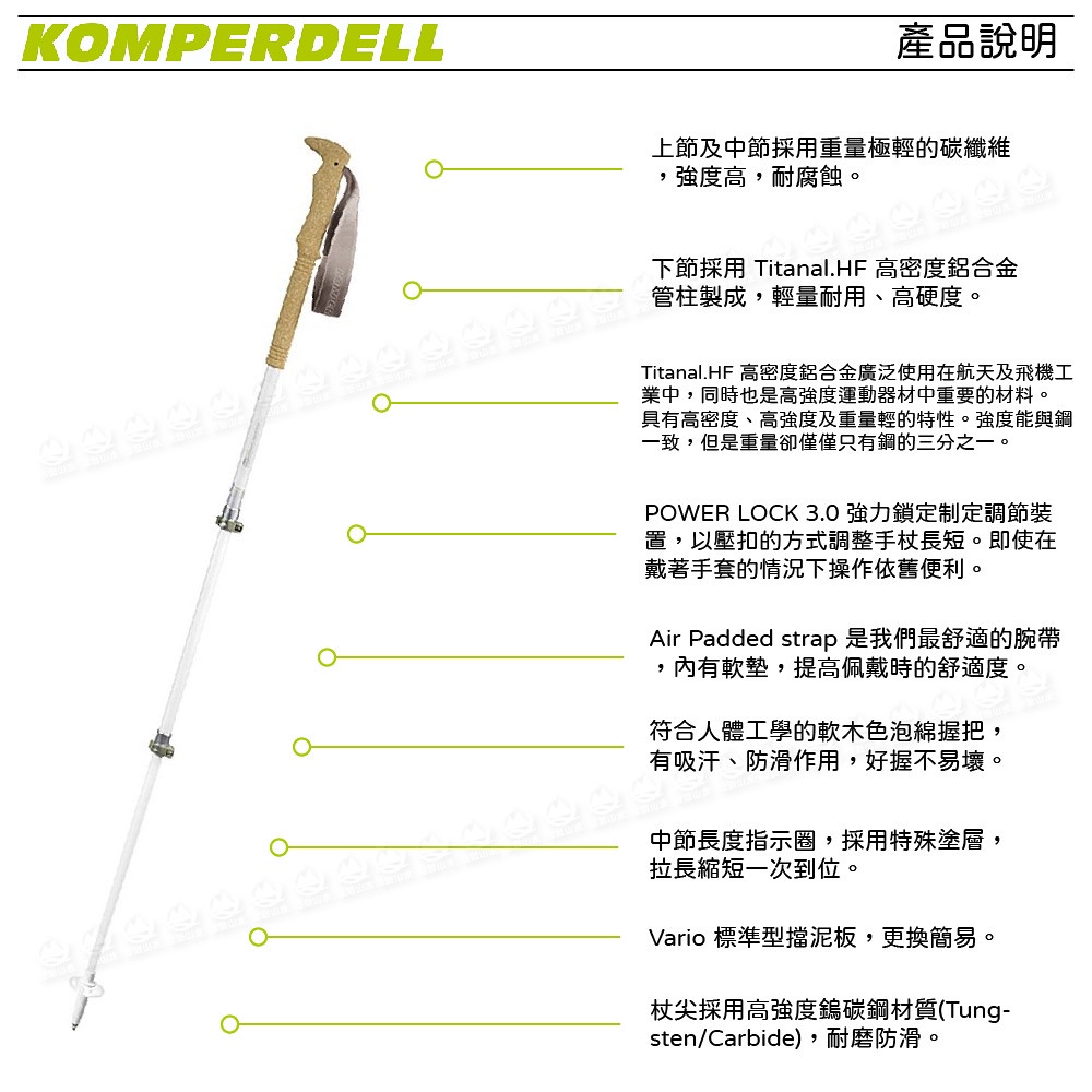 福利品【Komperdell 奧地利 碳纖+鈦金快扣登山杖 (女用) 120cm/213g】1752359/手杖/柺杖