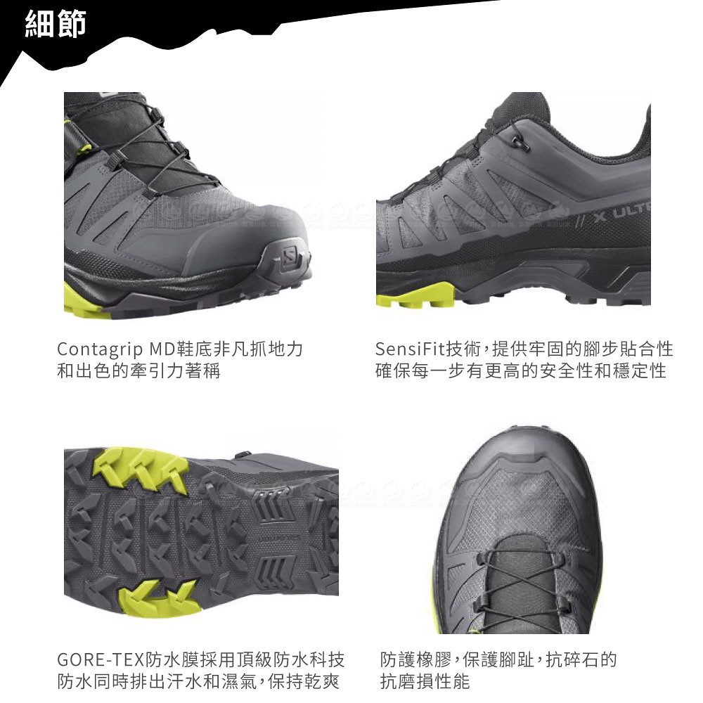 【SALOMON 索羅門 男 X ULTRA 4 GTX 低筒登山鞋《靜灰/黑/月見草黃》】416229/健行鞋
