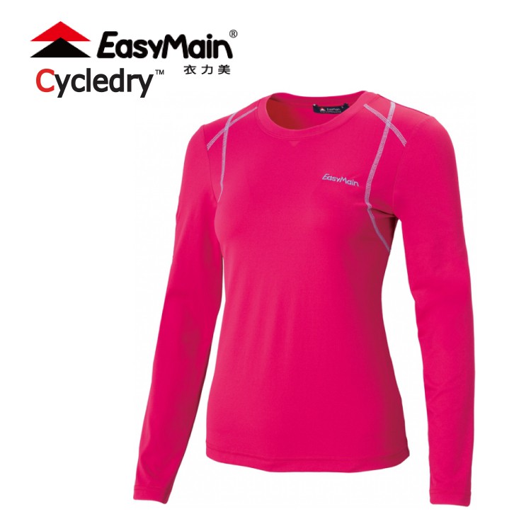 【EasyMain 衣力美 女 細橫紋排汗長T《紫紅》】TE19022/輕質/快乾/吸汗/涼爽/透氣/運動上衣/悠遊山水