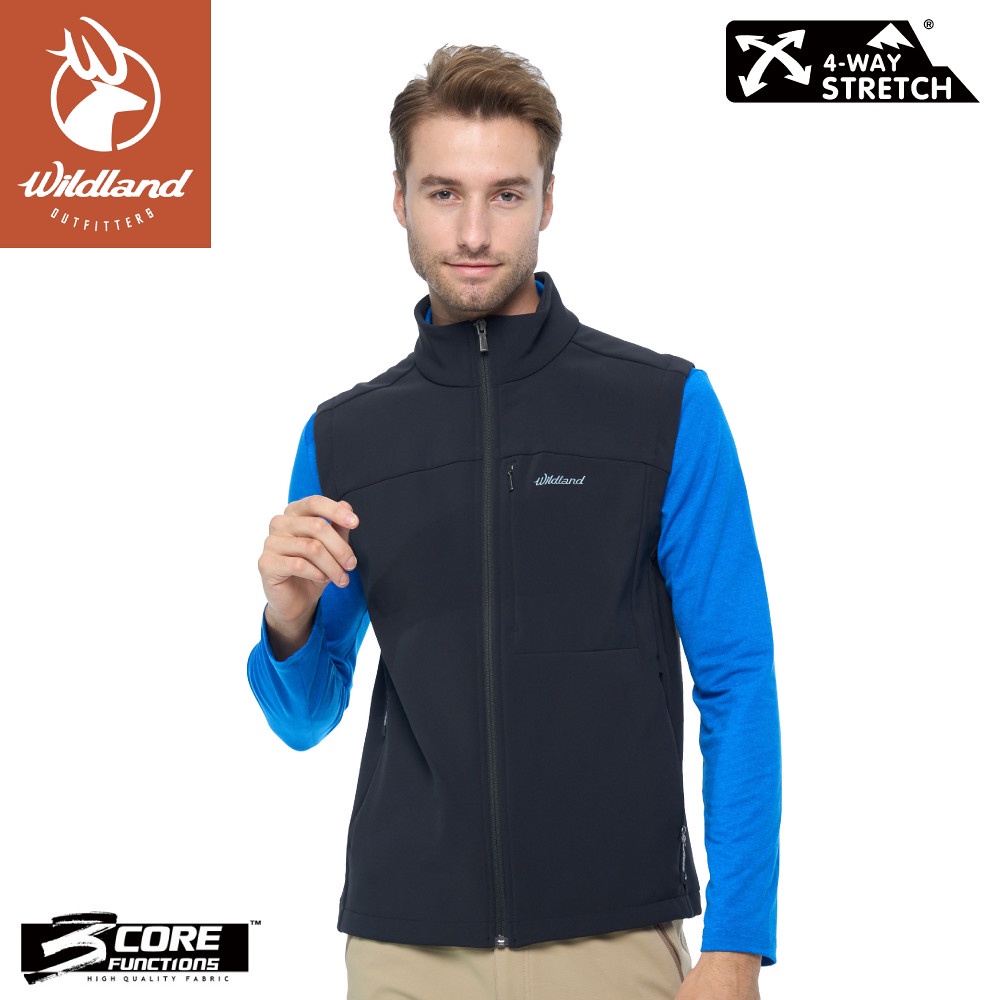 【Wildland 荒野 男N66防風防潑三層貼保暖背心《黑色》】0B02708/軟殼背心/登山/內刷毛