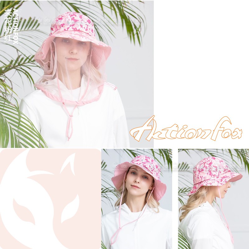 【ActionFox 挪威 抗UV印花網罩遮陽帽《夾花粉紅》】631-5091/圓盤帽/透氣/戶外/登山/園藝/悠遊山水