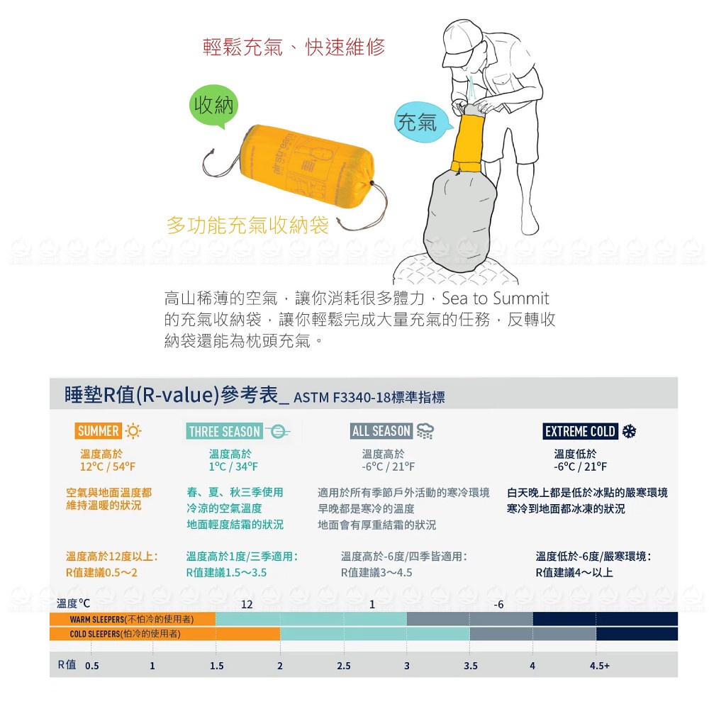 【Sea to Summit 澳洲輕厚系列睡墊-加強版男R(含充氣袋,維修貼,枕貼)《深灰》】STSAMELXTINS
