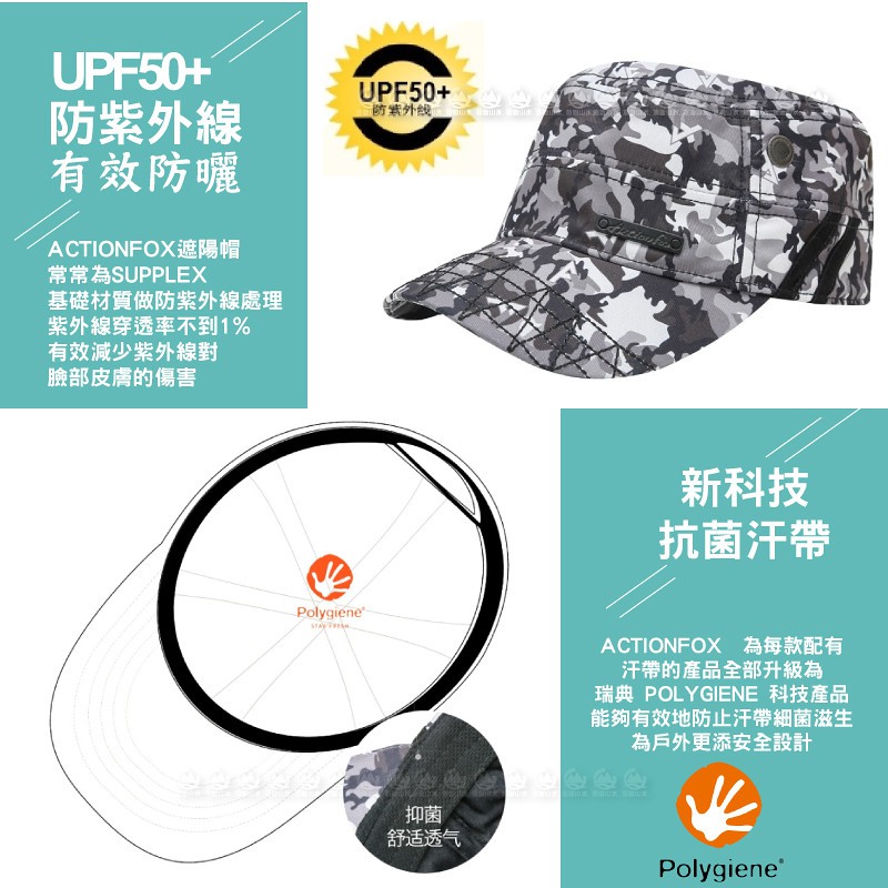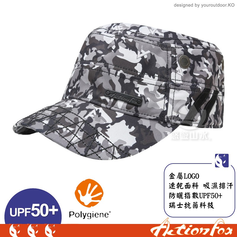 【ActionFox 挪威 迷彩印花抗UV軍帽《夾花黑》】630-5107/UPF50+/吸汗快乾/抗菌/鴨舌/悠遊山水