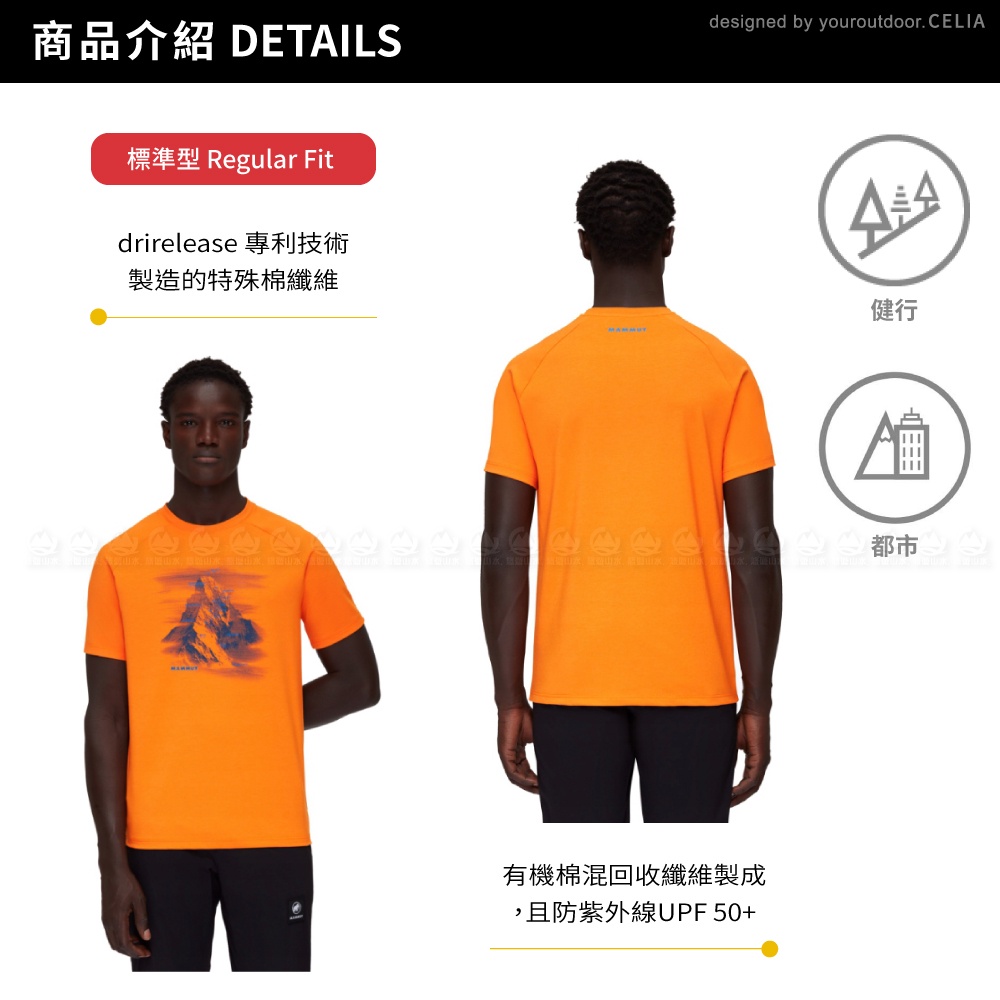 【MAMMUT 長毛象 男 Mountain T-Shirt 防曬機能短袖T恤《深柑桔橘》】1017-05290/快乾T